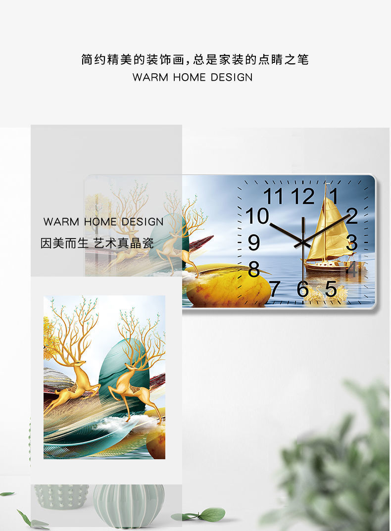 Internet celebridad reloj montado en la pared sala de estar decoración reloj de cuarzo moda moderno simple creativo cristal porcelana pintura mudo Reloj de pared