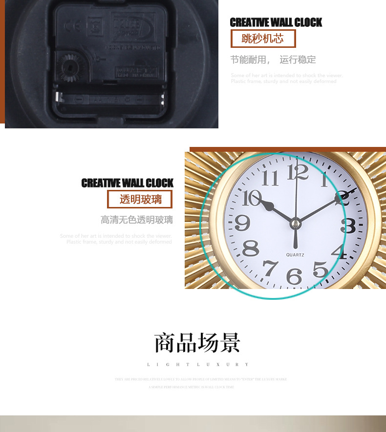 Fábrica original de Amazon al por mayor relojes europeos relojes de pared sala de estar silenciosa casa simple moda relojes de cuarzo pared