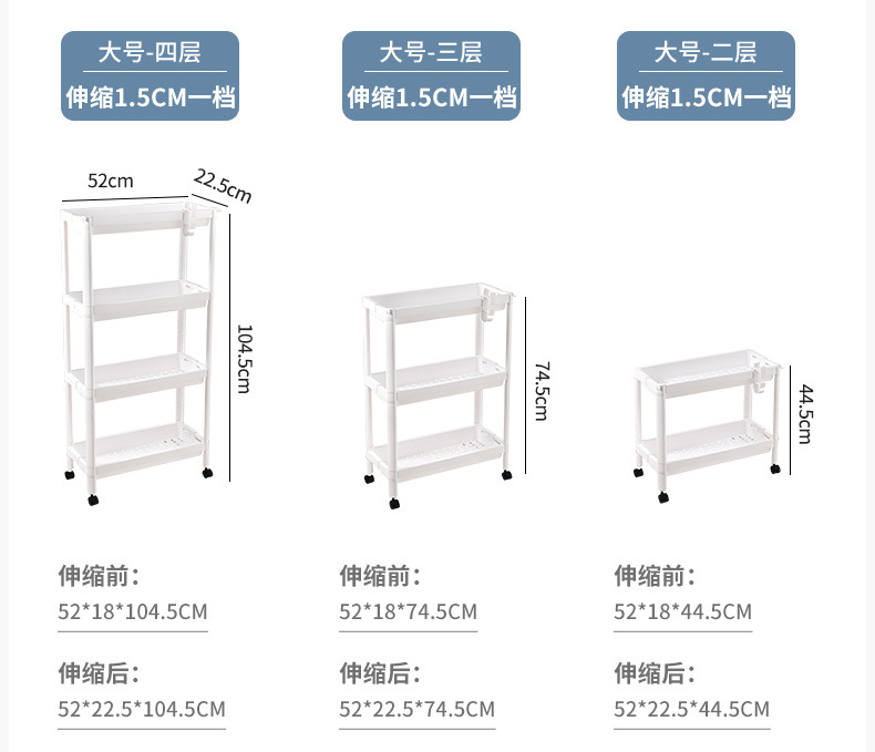 Estante telescópico, cocina, baño, inodoro, estante de almacenamiento con entrepierna, carrito de piso, estante de almacenamiento multicapa