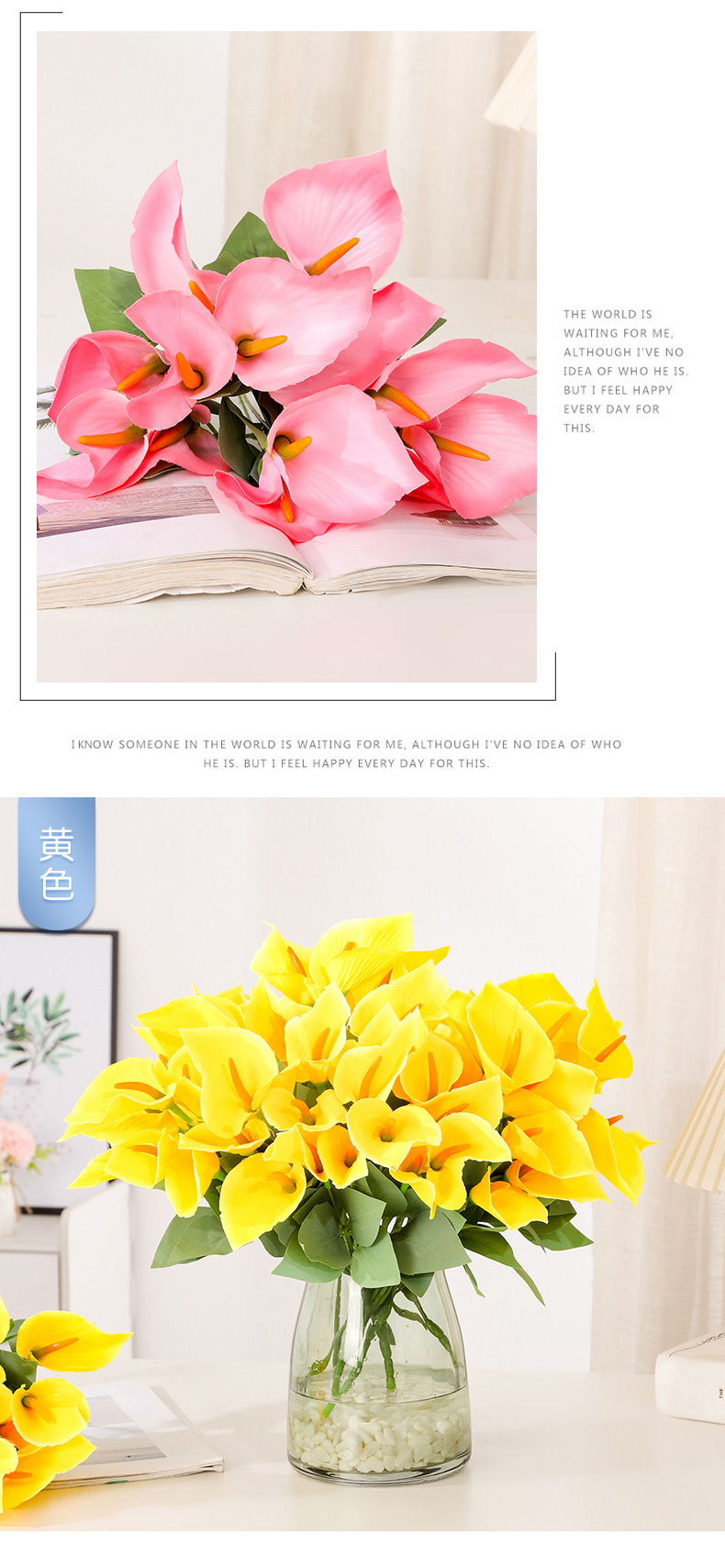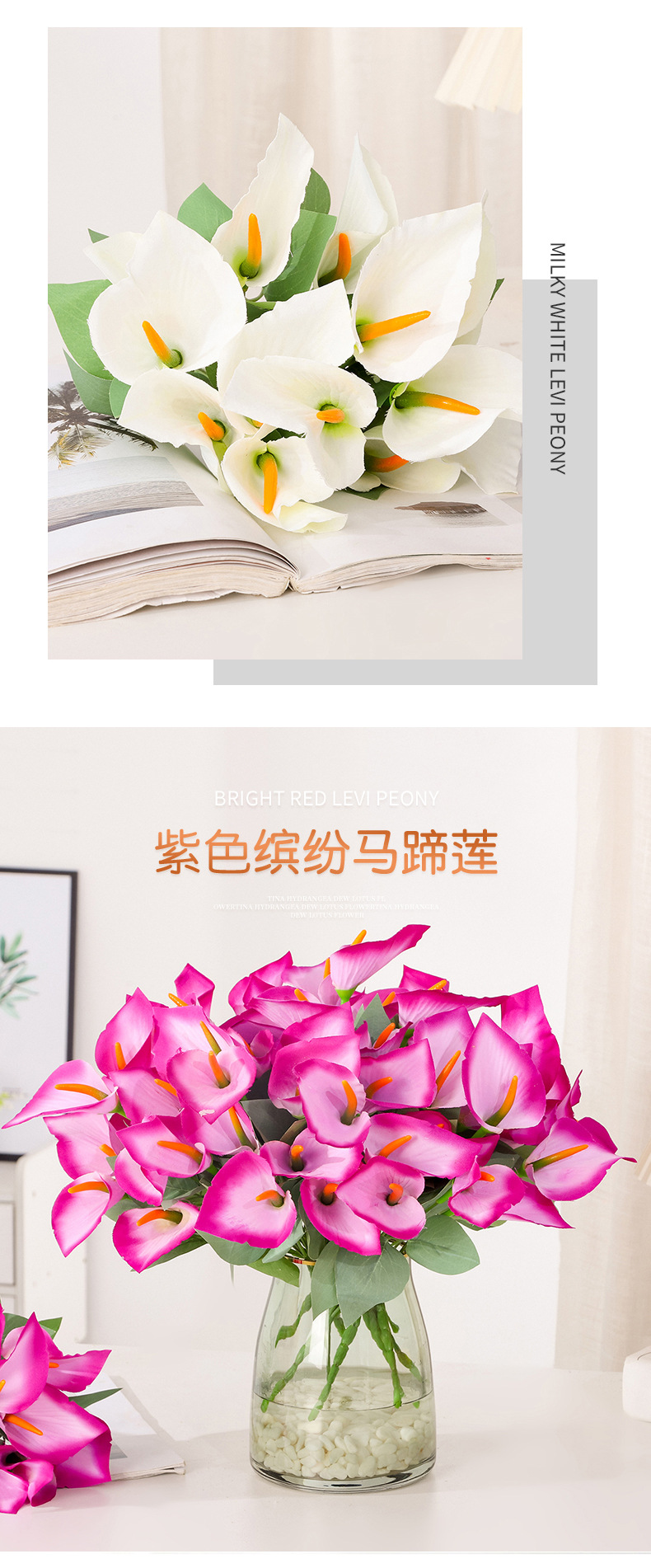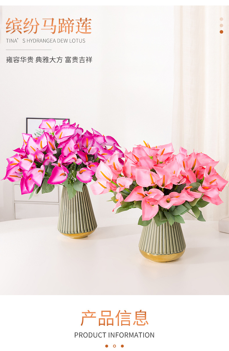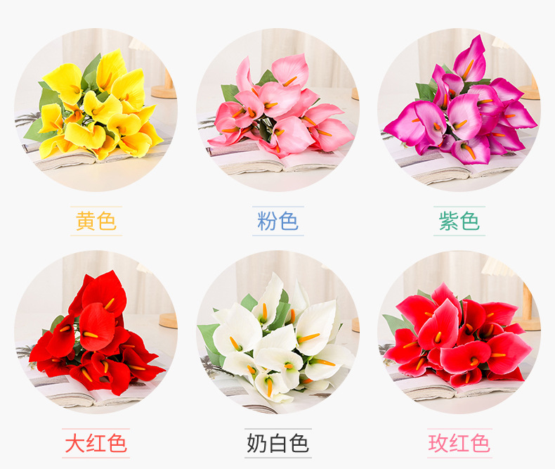 Ramo de calas artificiales de tallos múltiples Flores de seda Arreglos florales artificiales Flores decorativas para el salón de casa Accesorios para fotografía