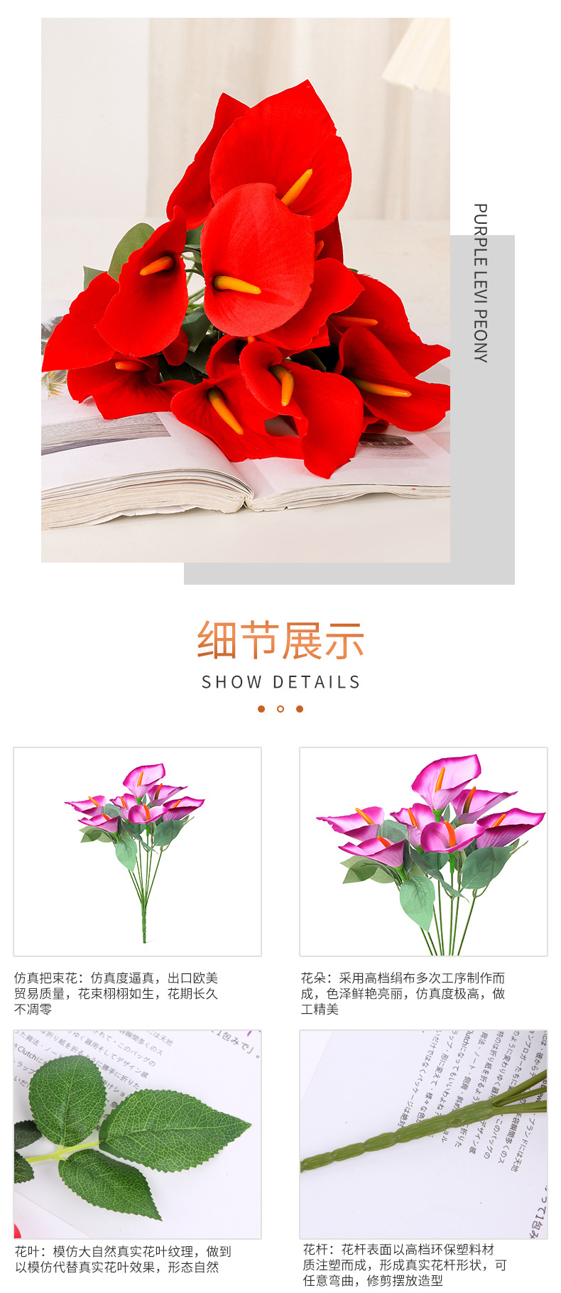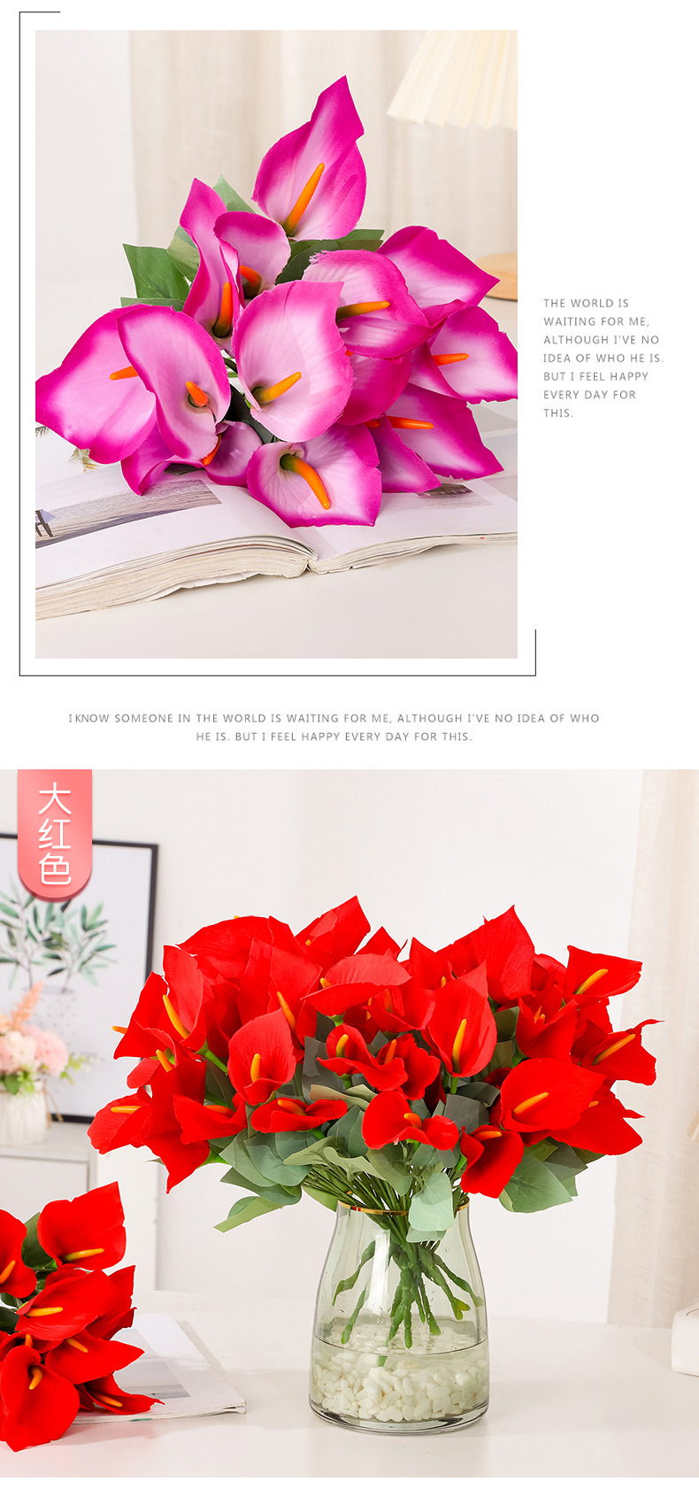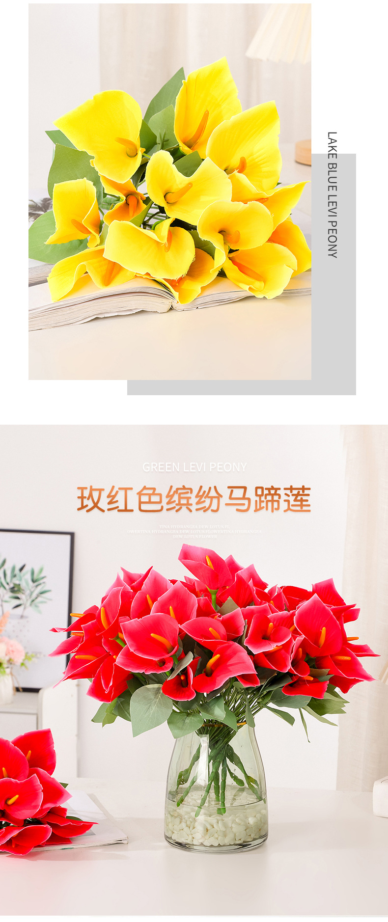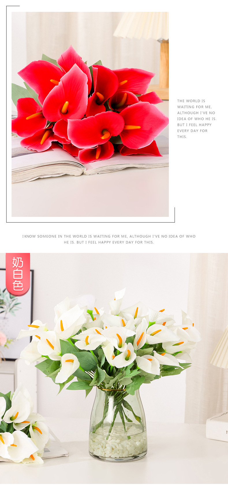 Ramo de calas artificiales de tallos múltiples Flores de seda Arreglos florales artificiales Flores decorativas para el salón de casa Accesorios para fotografía