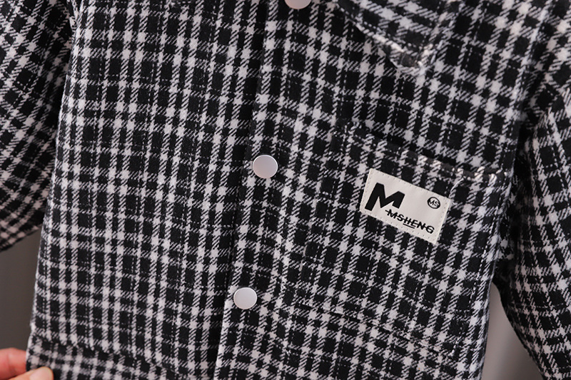 Niños con chaqueta de chaqueta, bebés con chaqueta de manga larga, chaqueta de invierno, camisa a cuadros.