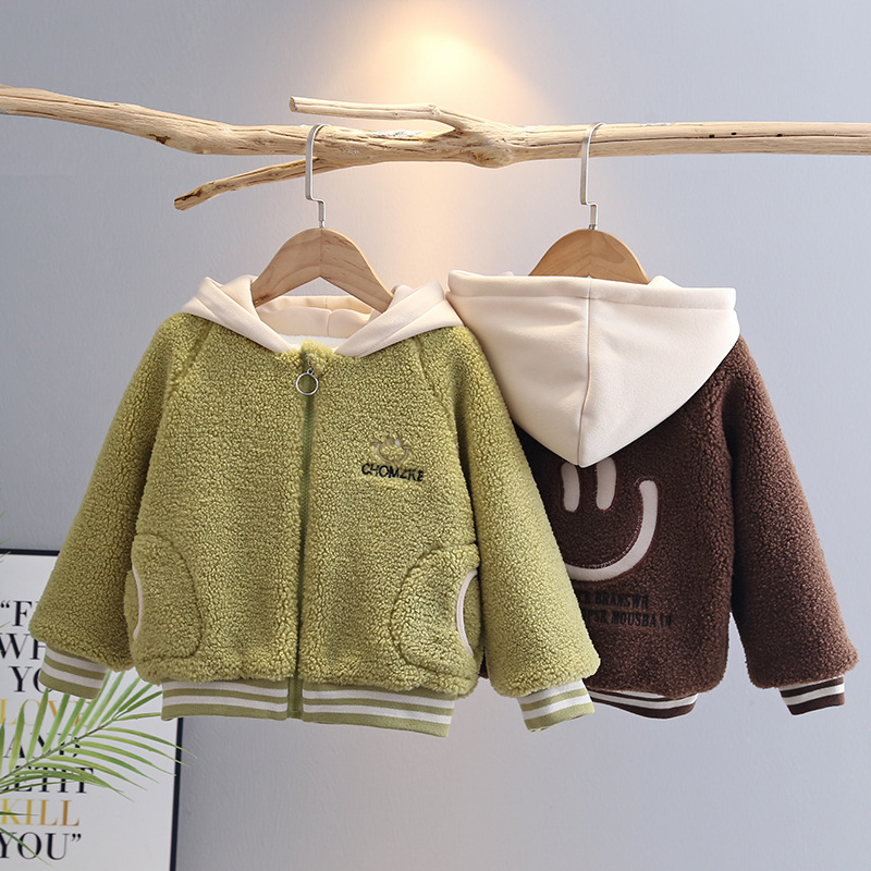 Bebé otoño e invierno nuevo abrigo niño niña más terciopelo grueso rebeca cálida suéter casual con capucha para niños