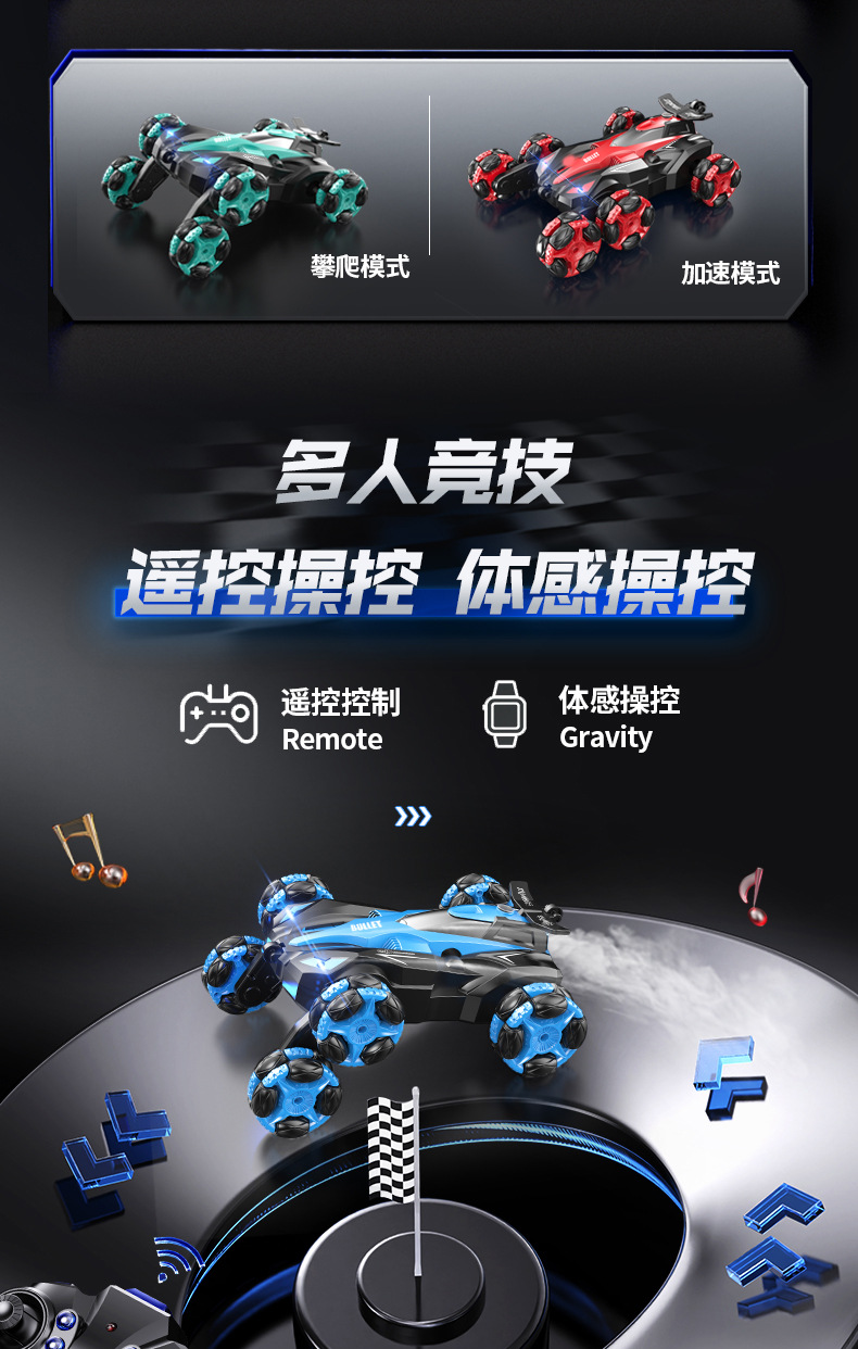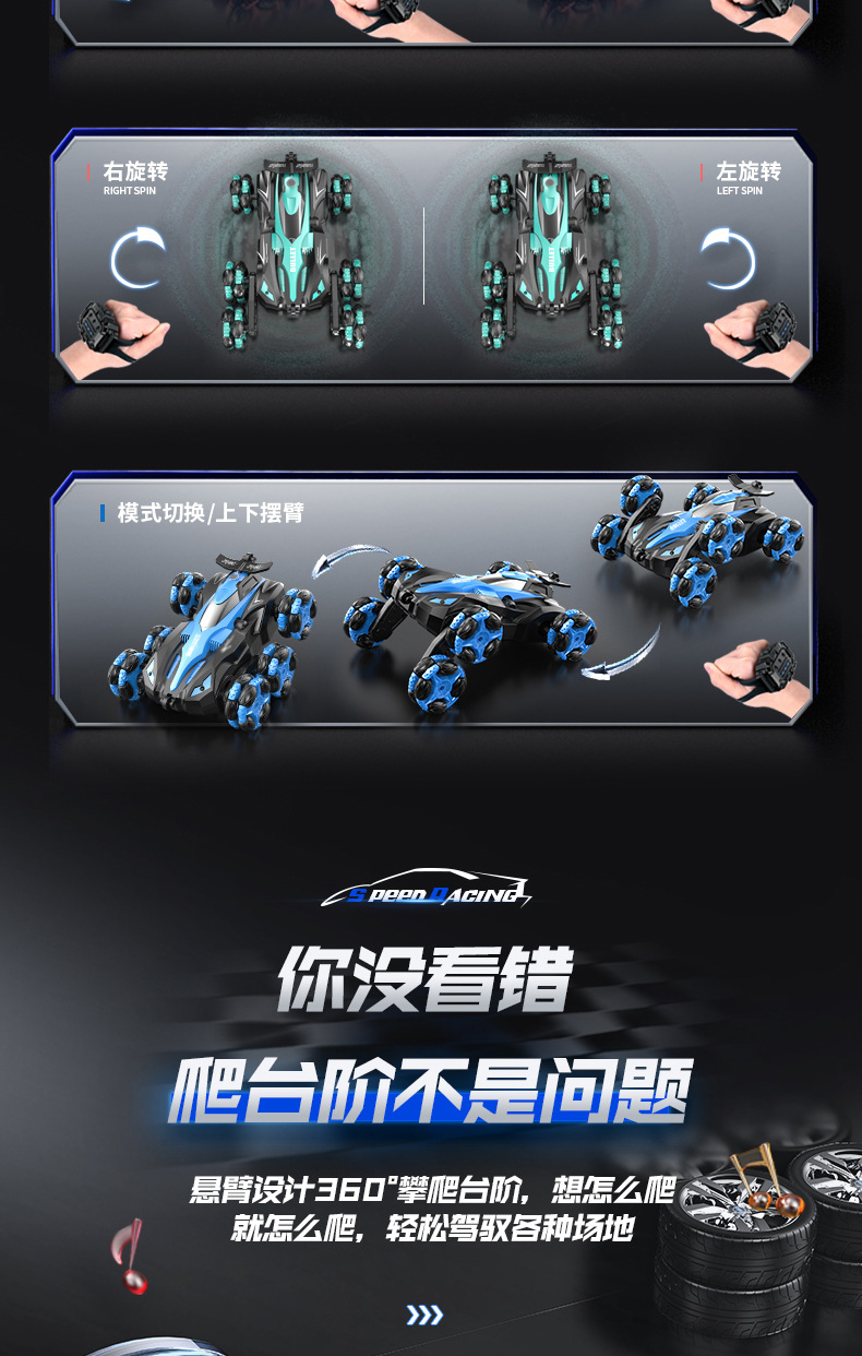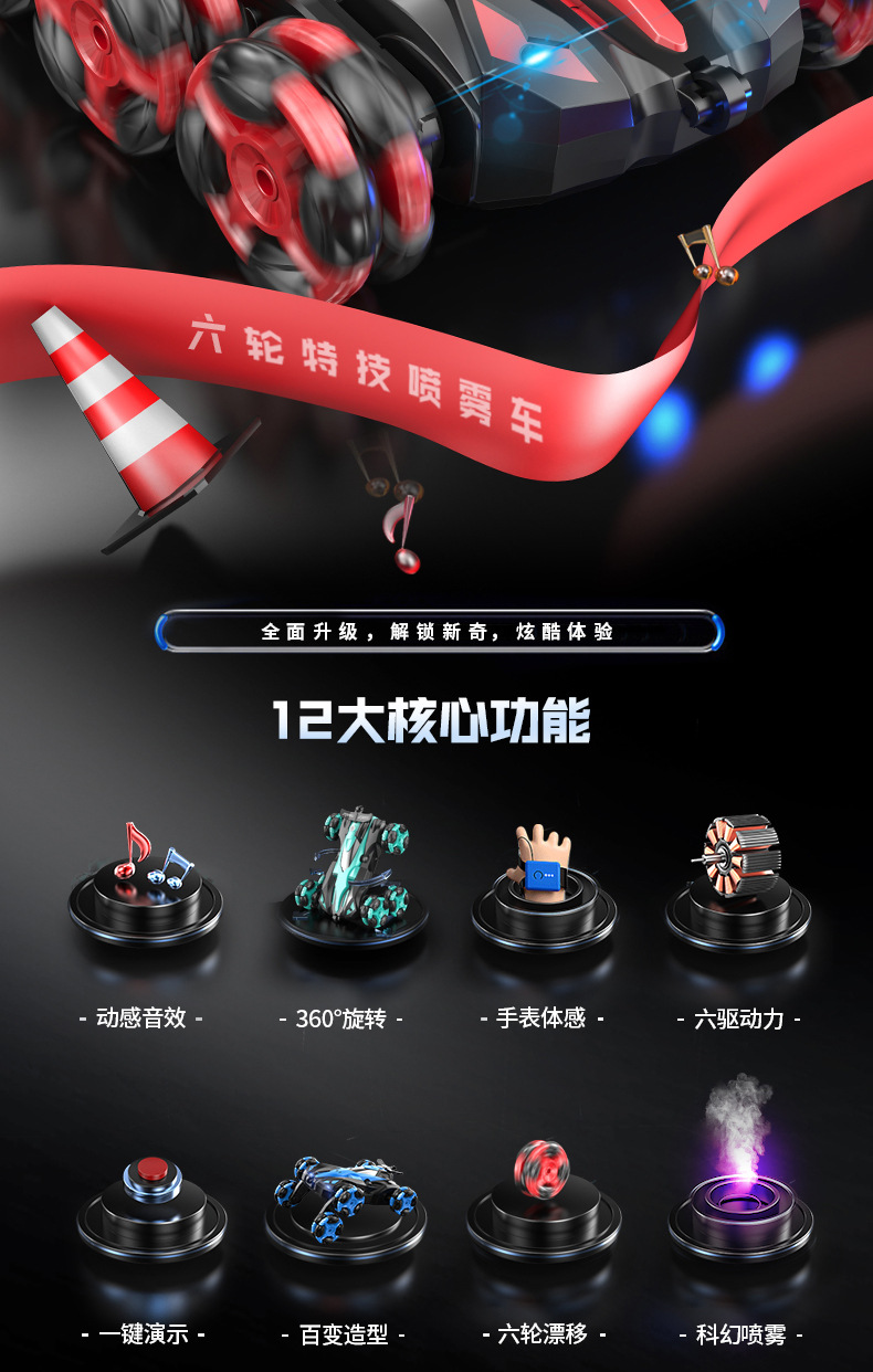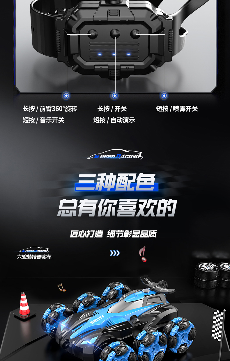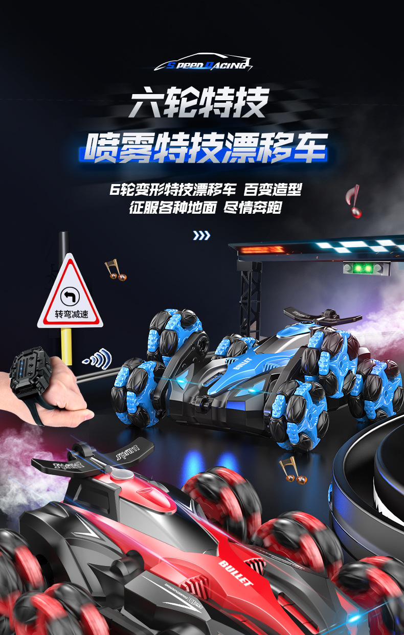 Transfronterizo de seis ruedas de control remoto del coche gesto inducción deriva truco vehículo todoterreno Música control remoto inalámbrico niño juguete