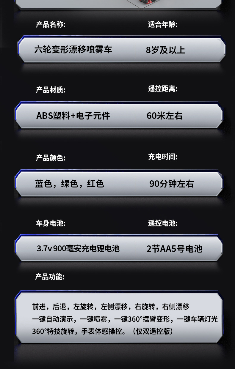 | Color | Seis ruedas de la música del aerosol del coche del truco-Rojo,Seis ruedas de la música spray de coches de acrobacias-Azul,Seis-Rueda de la música del aerosol del coche del truco-Verde,Seis ruedas de spray de música Stunt car + Watch-azul,De seis ruedas de la música spray Stunt car + Watch-Rojo,Seis ruedas spray de música Stunt car + Watch-verde |
