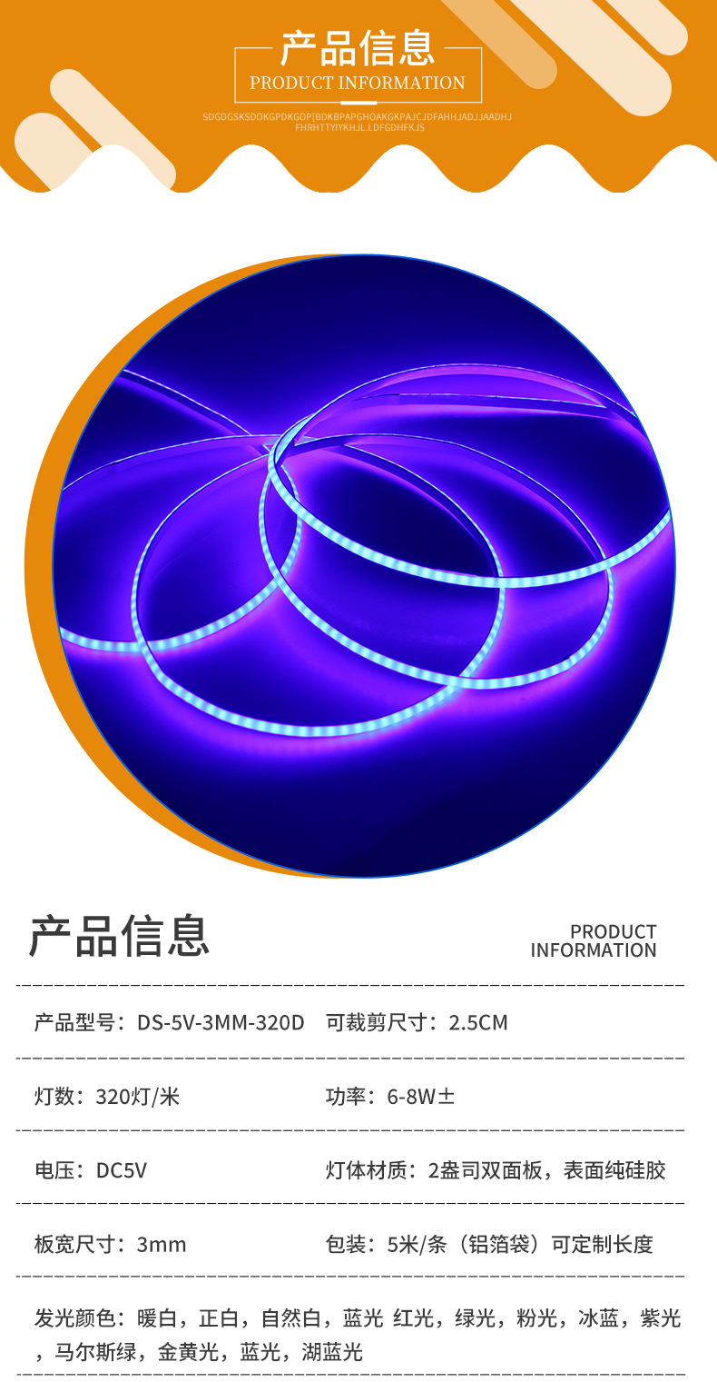 USB enchufable 5V3mm ultra estrecho COB tira de luz cob tira de luz de marco de marco de base luminosa de 5v tira de luz
