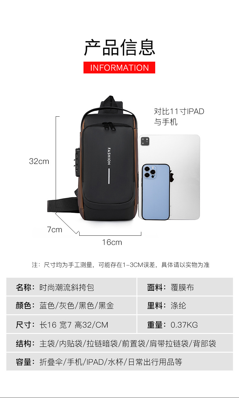 Bolso crossbody de los hombres bolso de pecho bolso de hombro bolso de la cintura de los deportes del ocio pequeña mochila multifuncional crossbody bolso de los hombres Contraseña de bloqueo