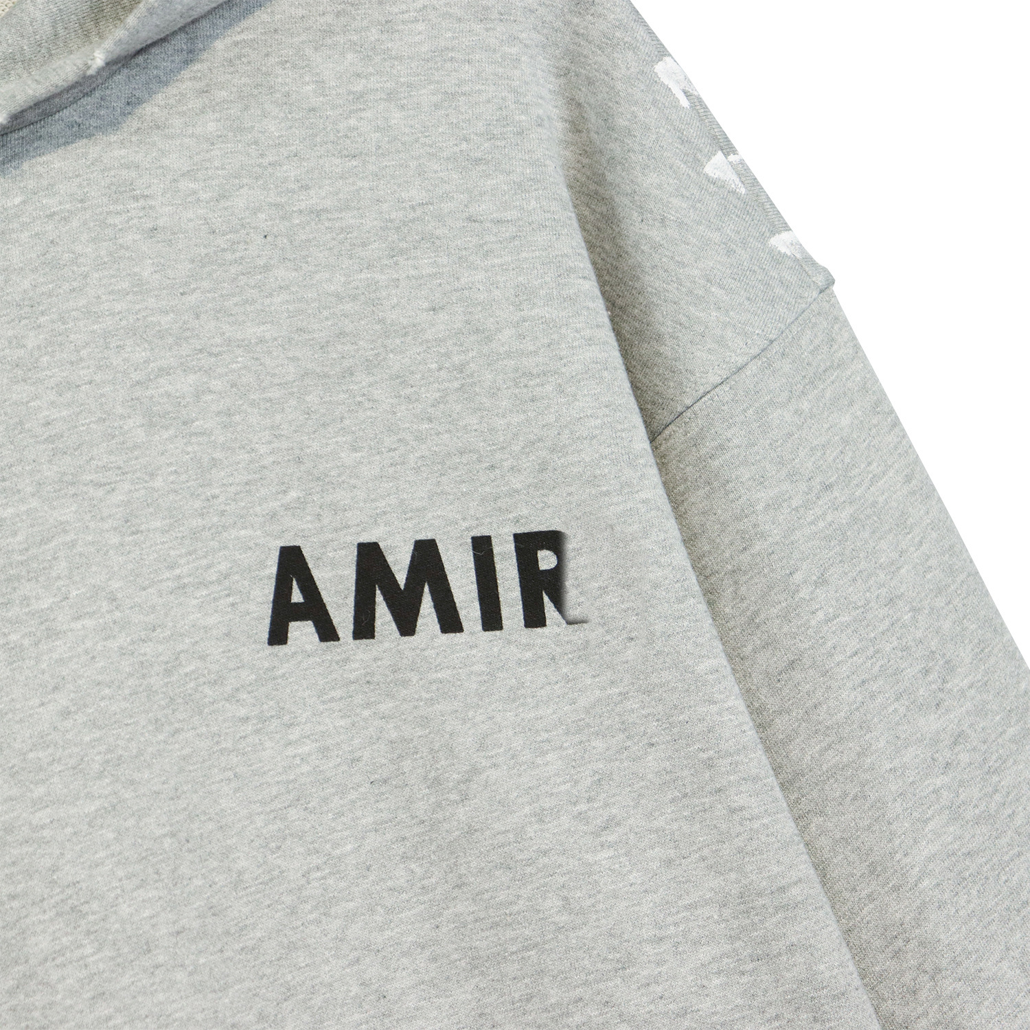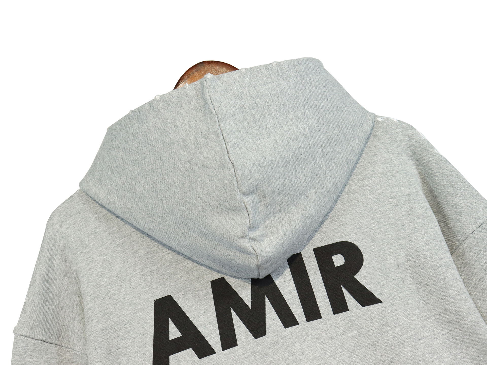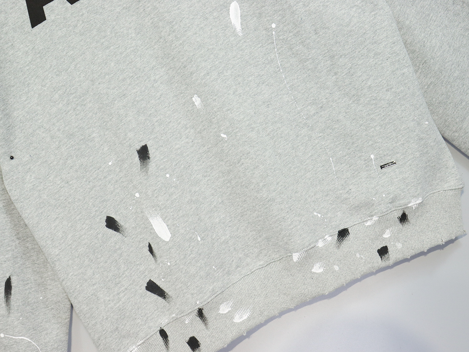 Sudadera con capucha AMIRI europea y americana Wang Yibo mismo estilo pintado a mano Impresión de salpicaduras de tinta desgastada suéter con capucha para hombres y mujeres deshilachados