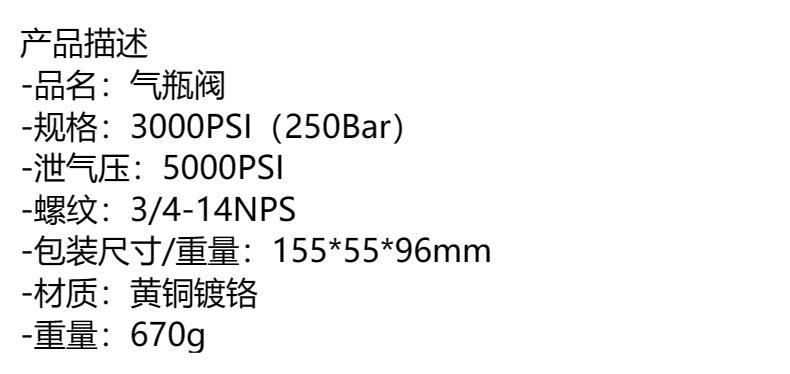 Buceo 3/4-14NPS 3000PSI 250bar válvula de cilindro tipo K válvula de cilindro Din York de doble uso