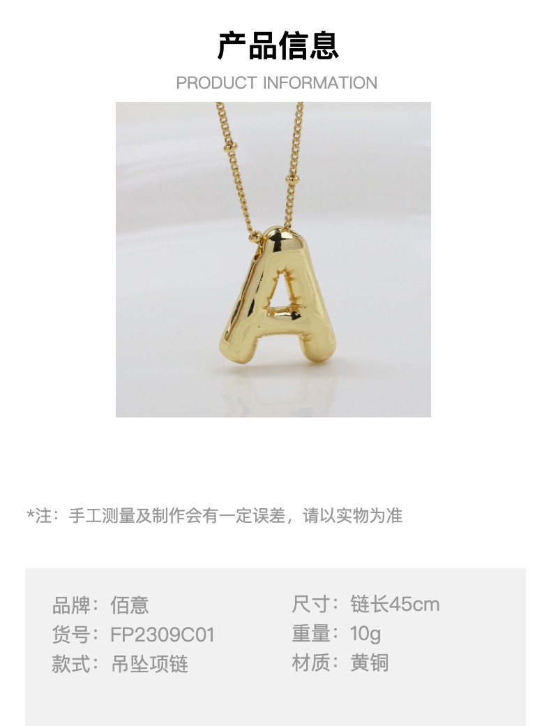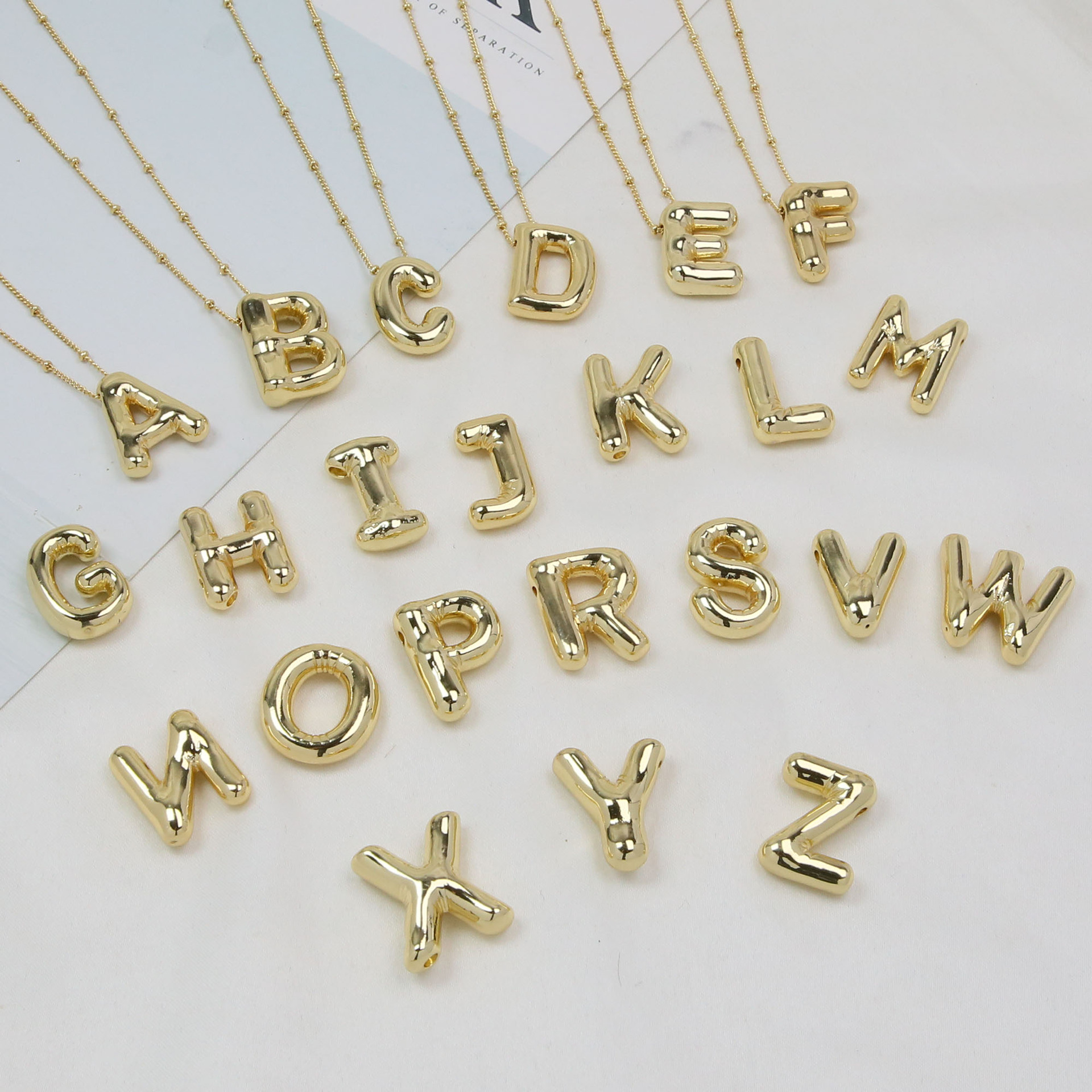 Amazon explosión 18k oro latón brillante globo de burbujas 26 letras inglesas colgante collar de moda