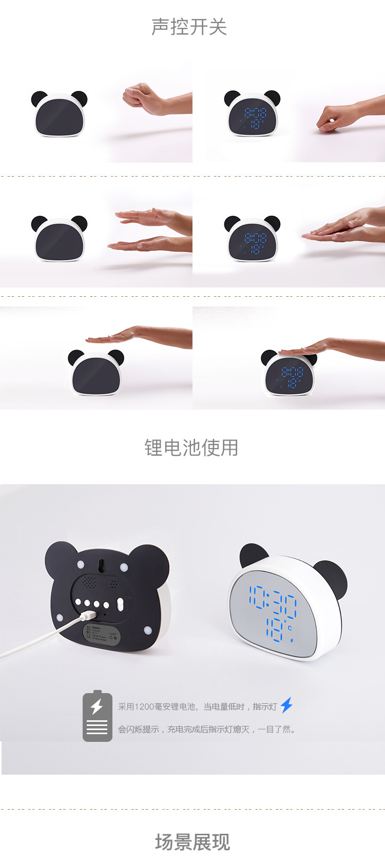 Panda despertador artefacto Niños Niñas niños escritorio inteligente fuerte despertador Internet celebridad reloj electrónico
