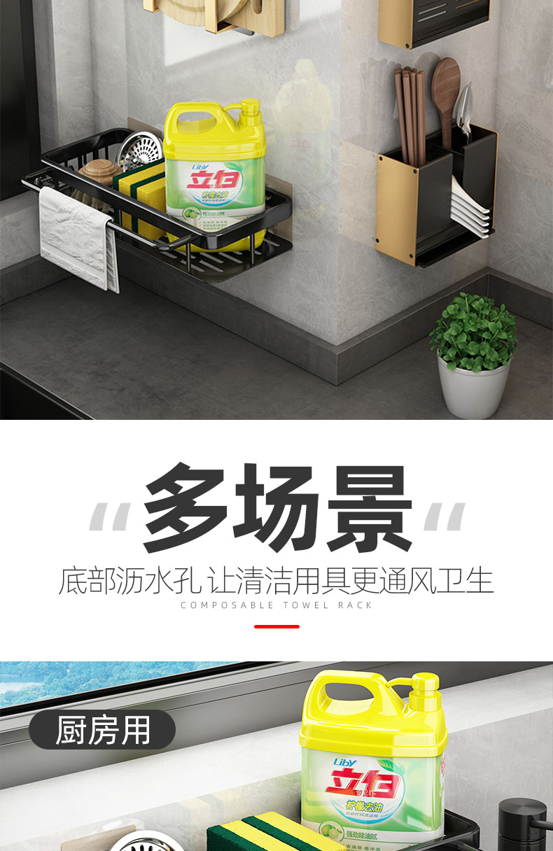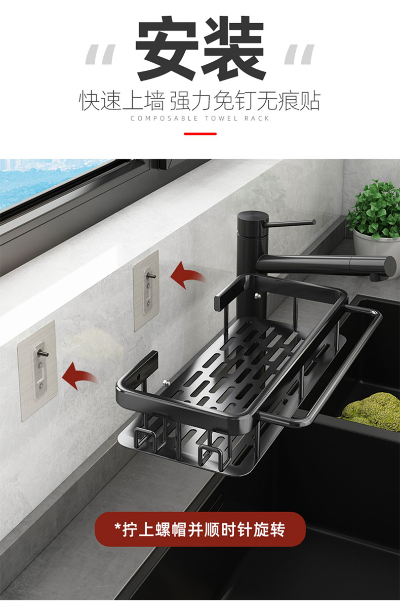 Estante de trapo estante de almacenamiento de cocina estante de almacenamiento montado en la pared sin ponche fregadero del hogar esponja cesta colgante fregadero drenaje artefacto
