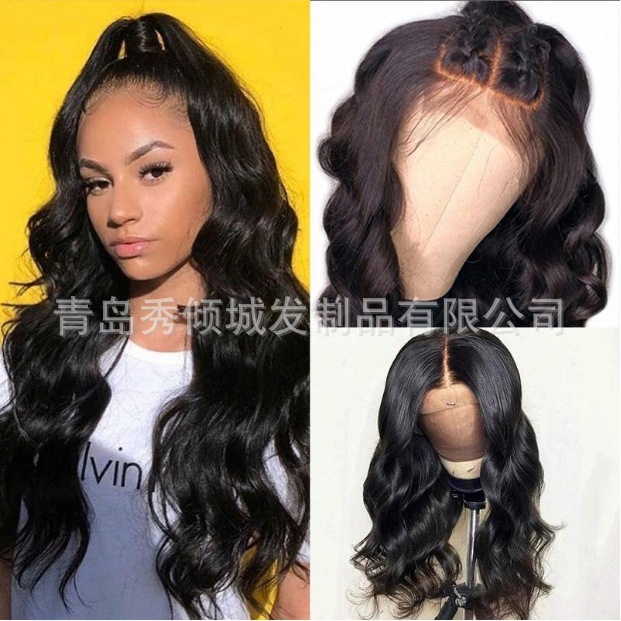 Peluca negra de ondas largas 134 con encaje frontal para cosplay, peluca transfronteriza
