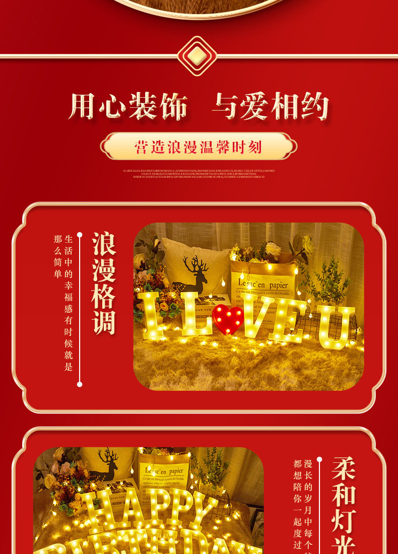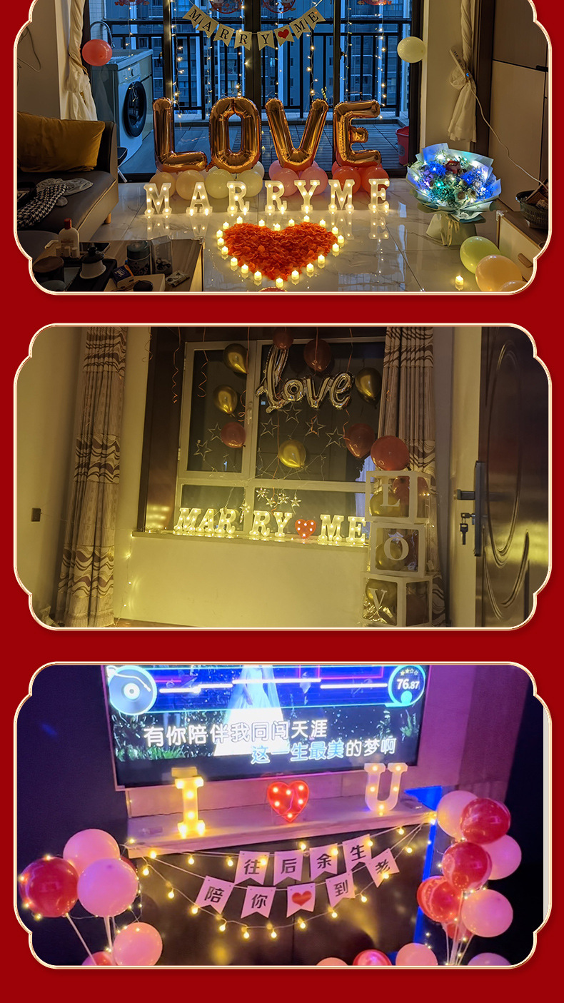 Accesorios de arreglo de confesión de propuesta, luces decorativas, luces de letras con números en inglés, luces de ambiente sorpresa románticas, luces de feliz cumpleaños