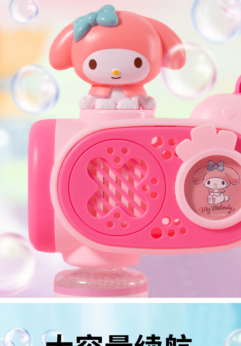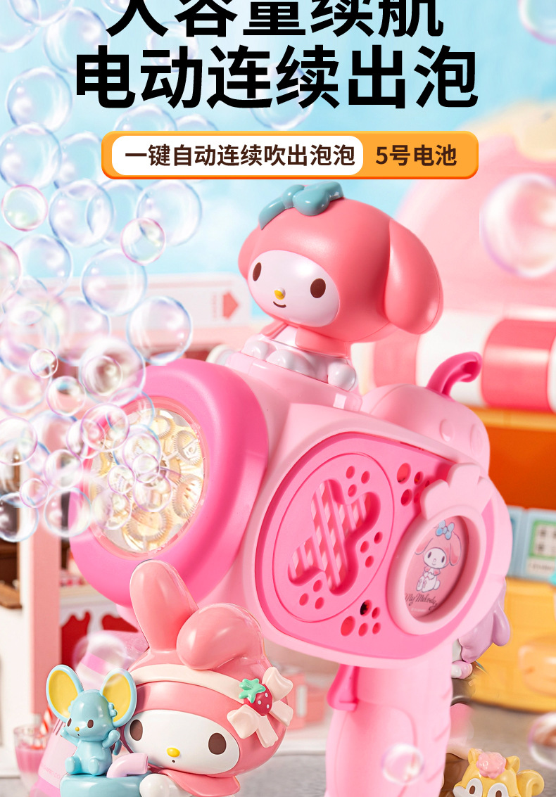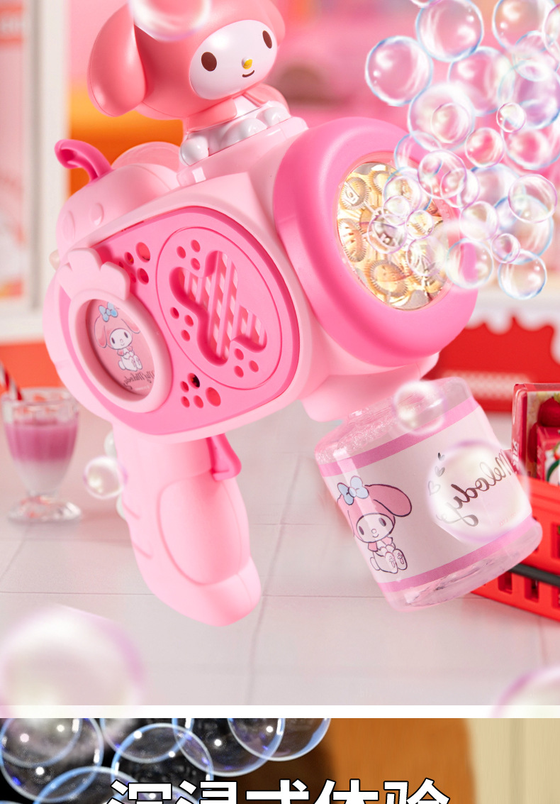 Máquina de burbujas Sanrio nueva máquina de burbujas eléctrica de mano genuina muñeca de red de burbujas pistola de burbujas juguetes al aire libre
