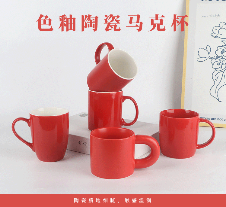 Taza de cerámica roja simple imprimible LOGO taza de agua de oficina taza de café taza de regalo de pareja