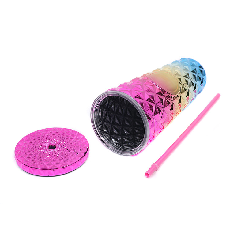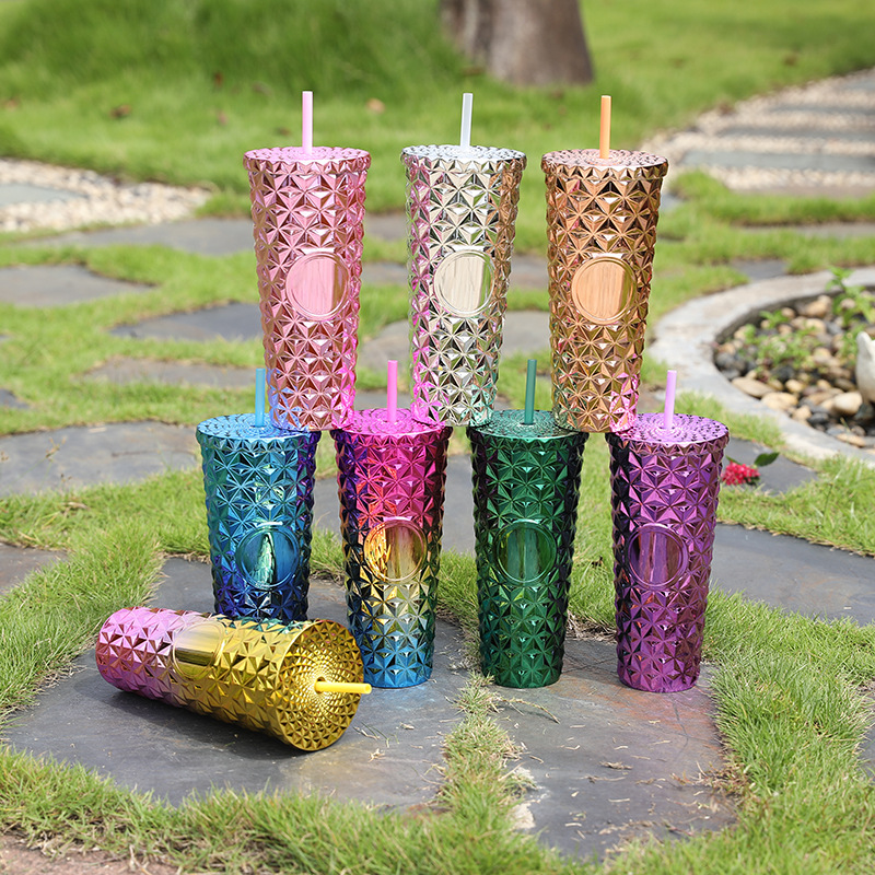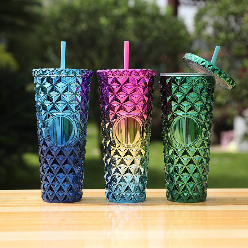 Venta caliente transfronteriza suministro directo de fábrica taza de cristal de galvanoplastia de doble capa taza de paja de plástico de doble capa 24oz taza de agua de gran capacidad