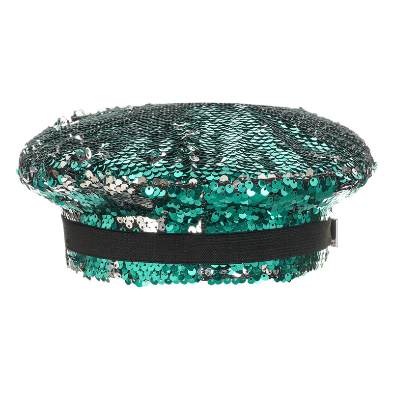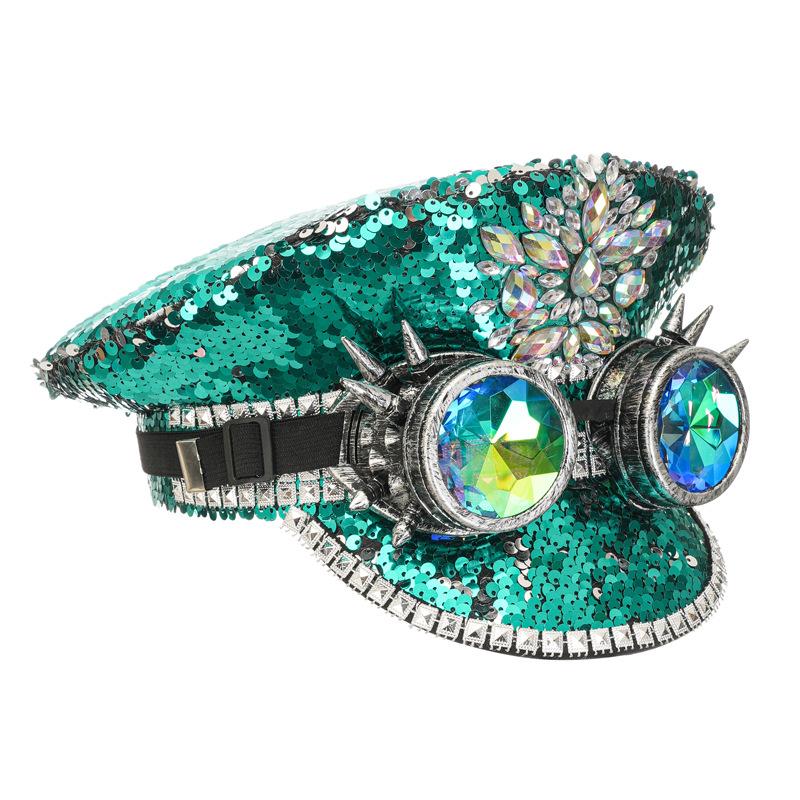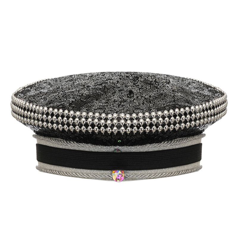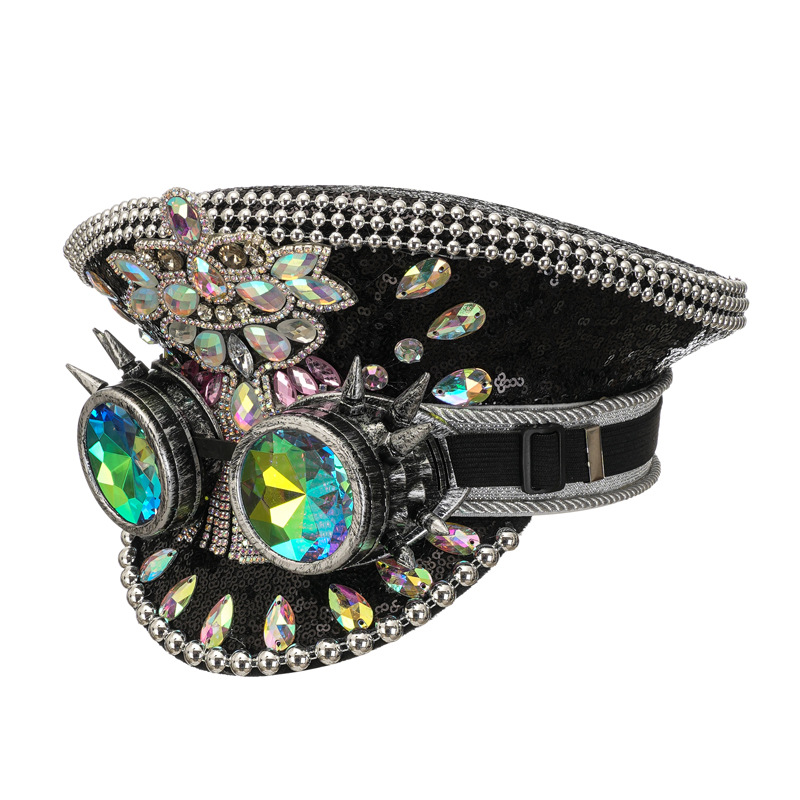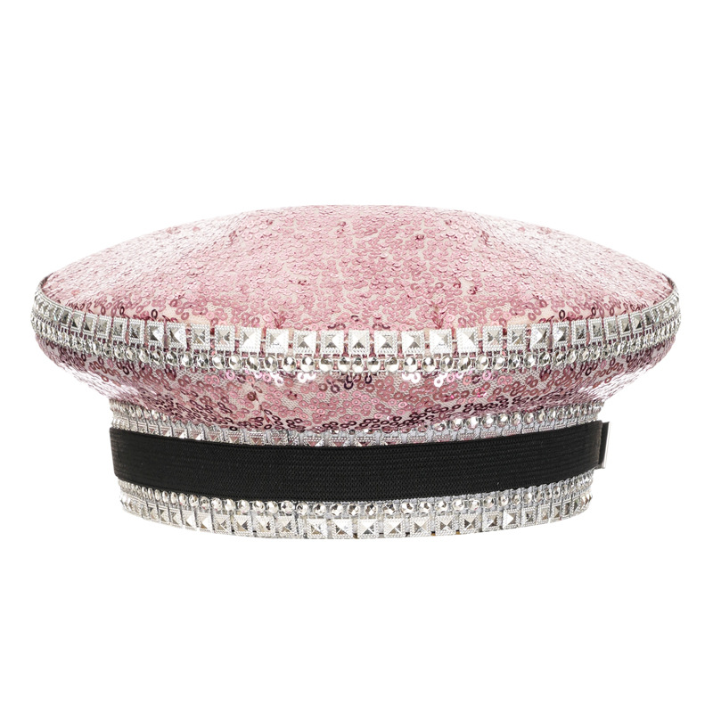 Gorra de lentejuelas con remaches y pedrería acrílica, estilo festival, ideal para eventos de música o fiestas