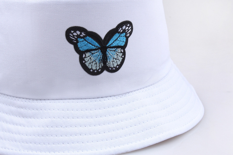 Sombrero pescador para mujer con bordado de mariposa, estilo japonés