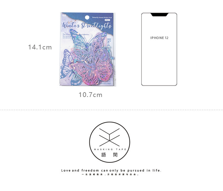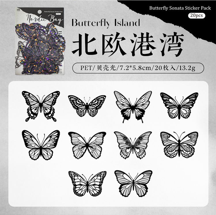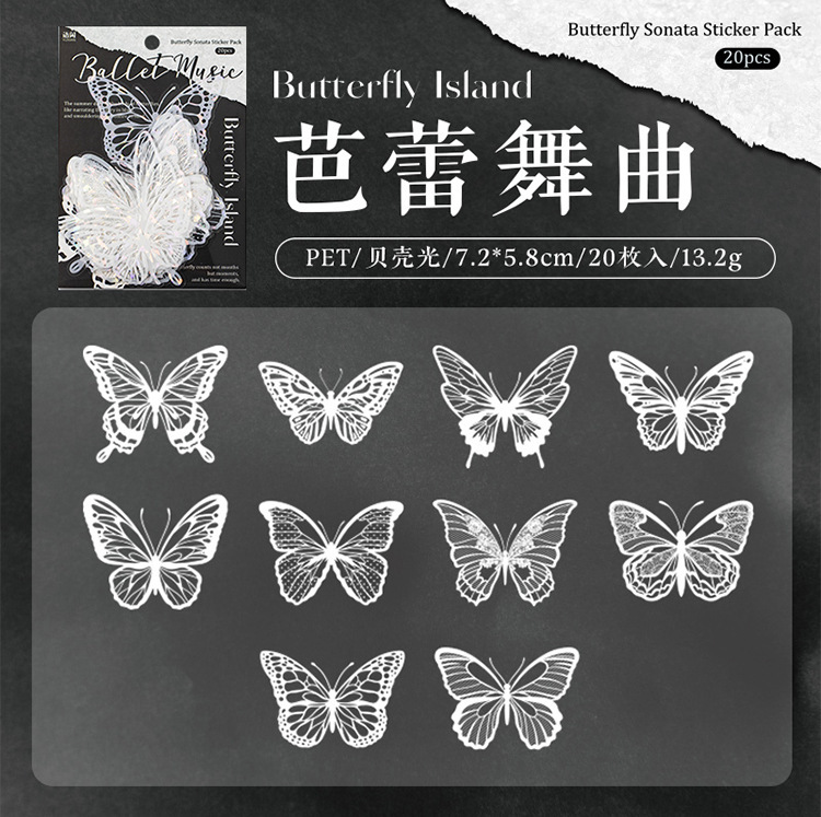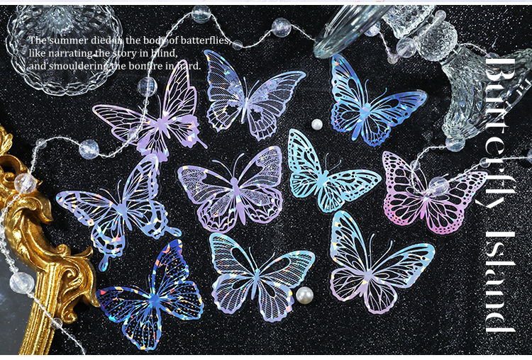 La serie de conchas de la isla de mariposa de la lengua, pegatinas de luz pet, bolsas de pegatinas retro ligeras, tarjetas de campana de mano, materiales DIY, pegatinas decorativas.