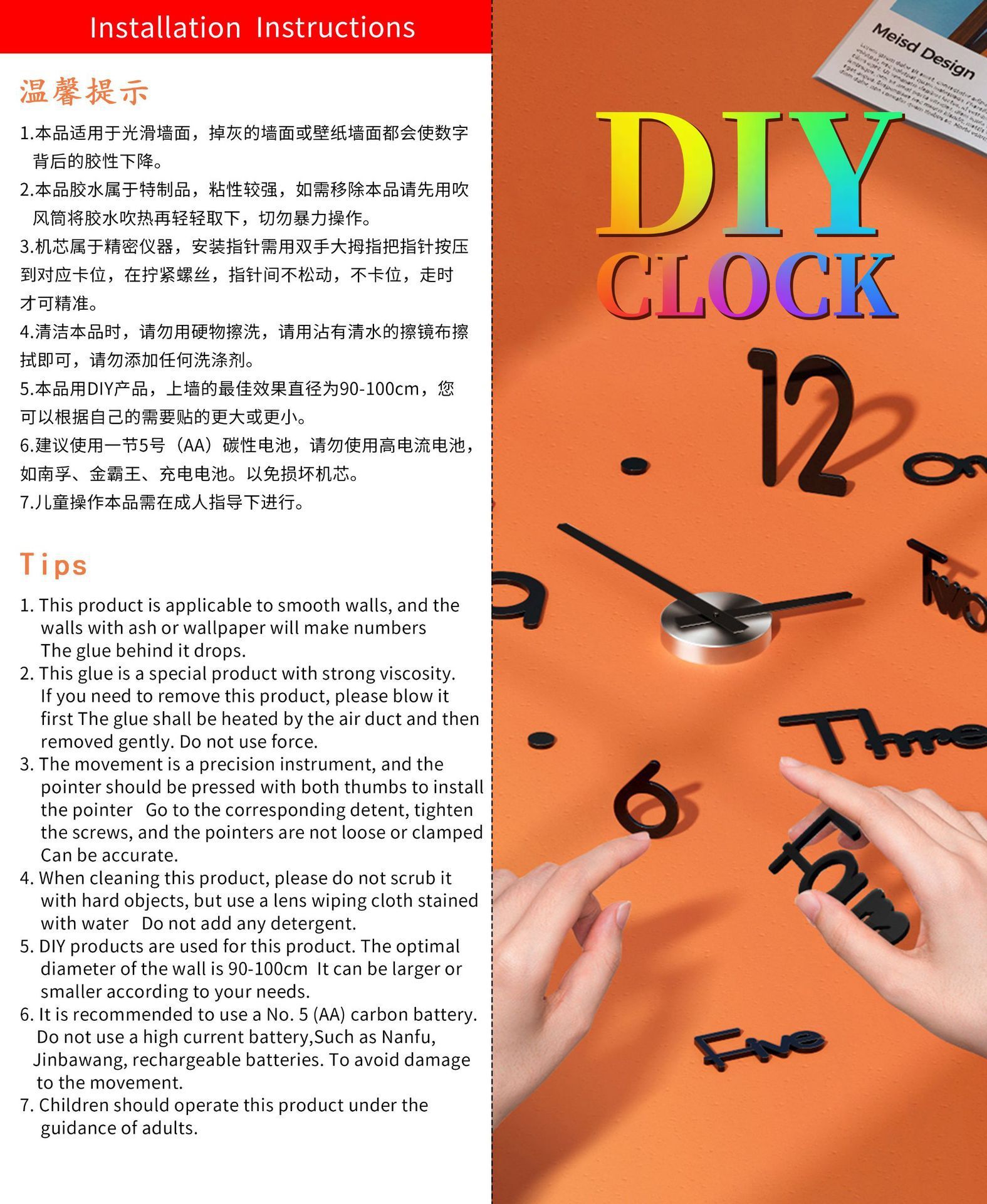 Reloj de pared DIY CLOCK para sala, espejo de gran tamaño, diseño de moda estereoscópico/caricatura, estilo nórdico