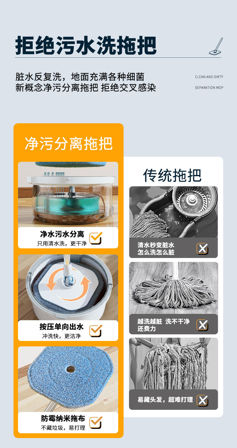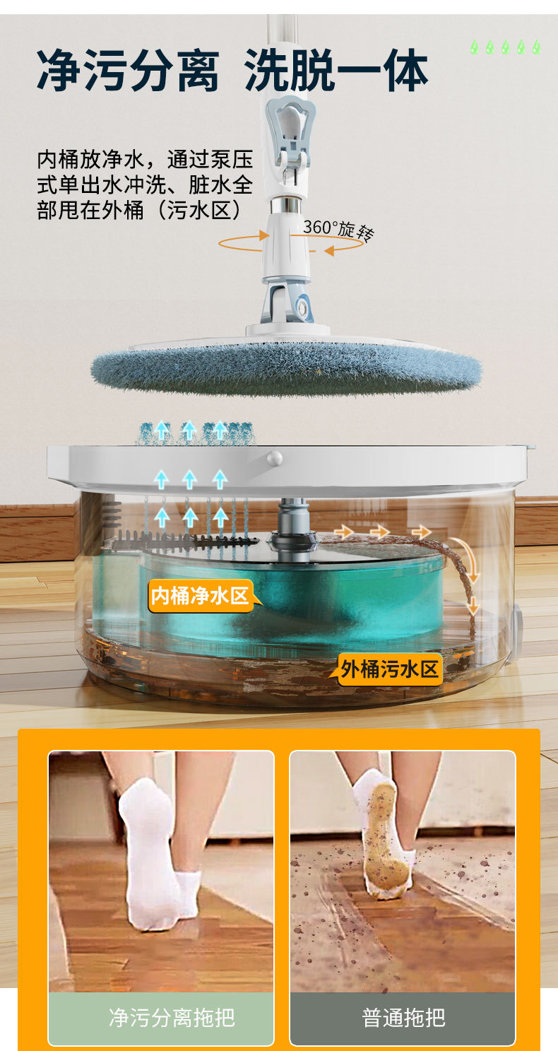 Cubo de fregona giratorio hogar perezoso absorbente limpio separación de aguas residuales lavado a mano libre fregona plana solo cubo fregona lote