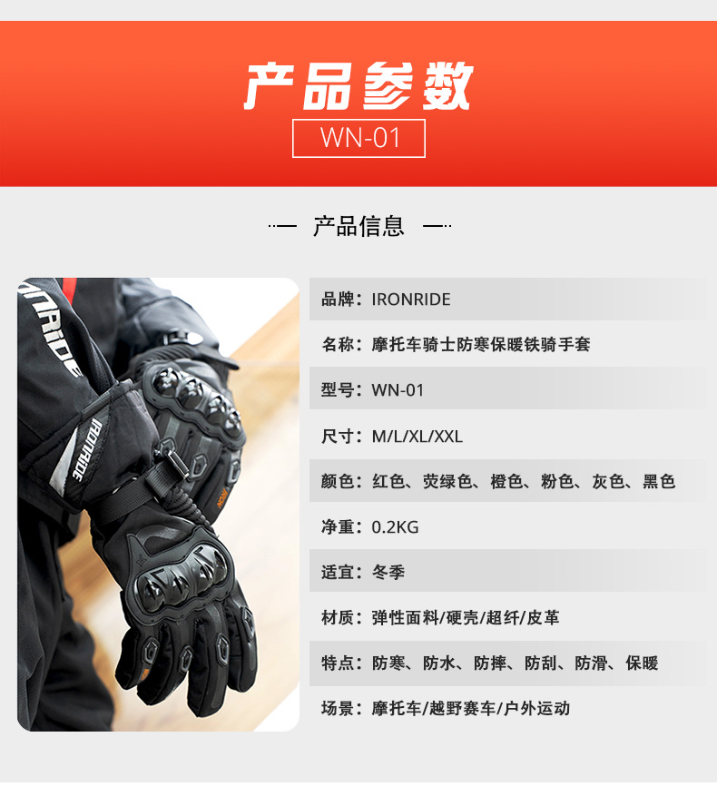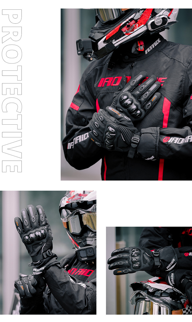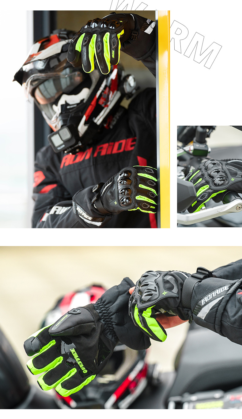 IRONRIDE motocicleta guantes de montar al aire libre Knight pantalla táctil resistente a la caída cáscara dura de carreras guantes de invierno cálido