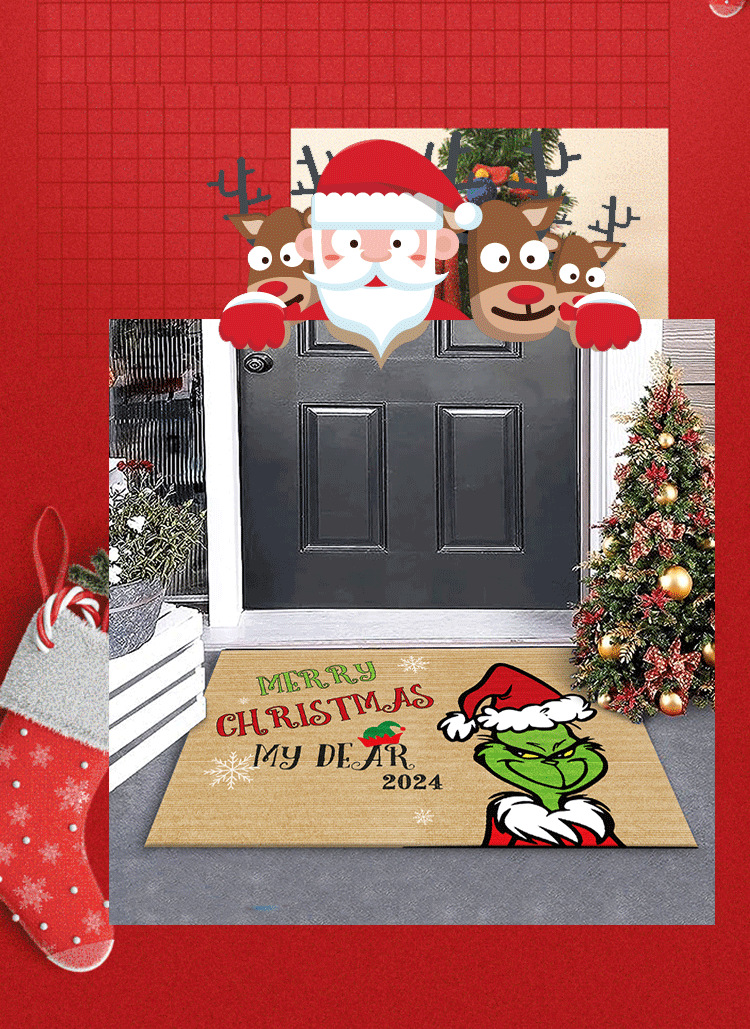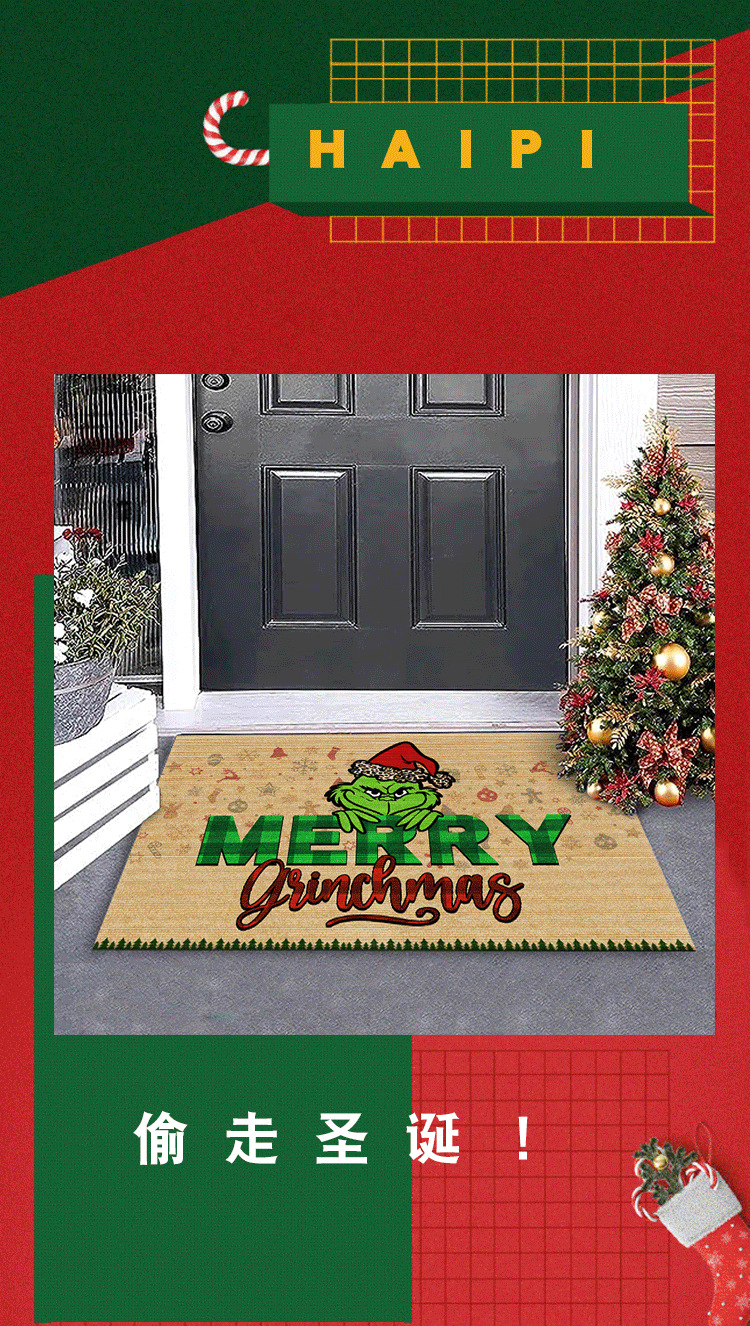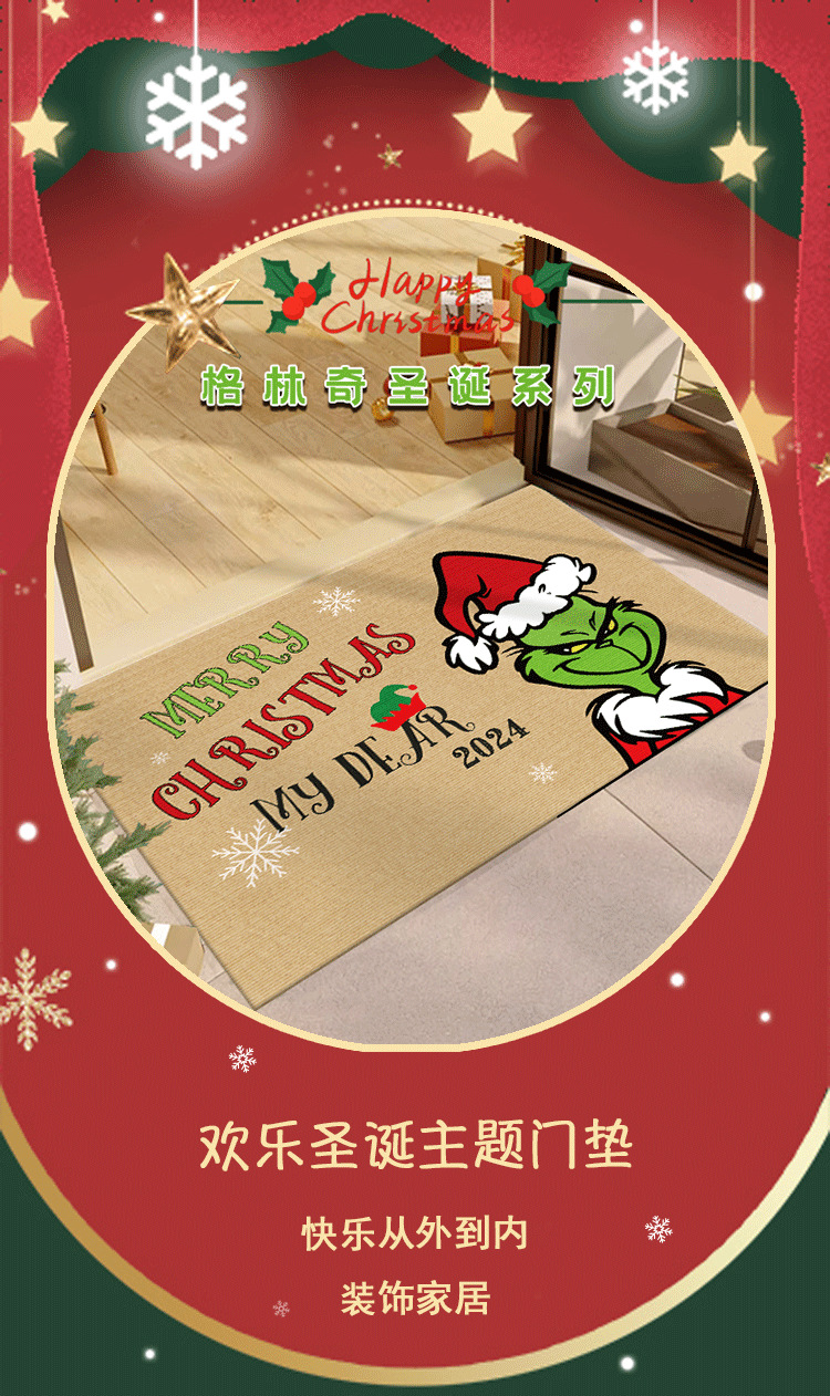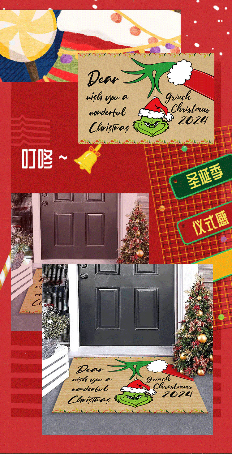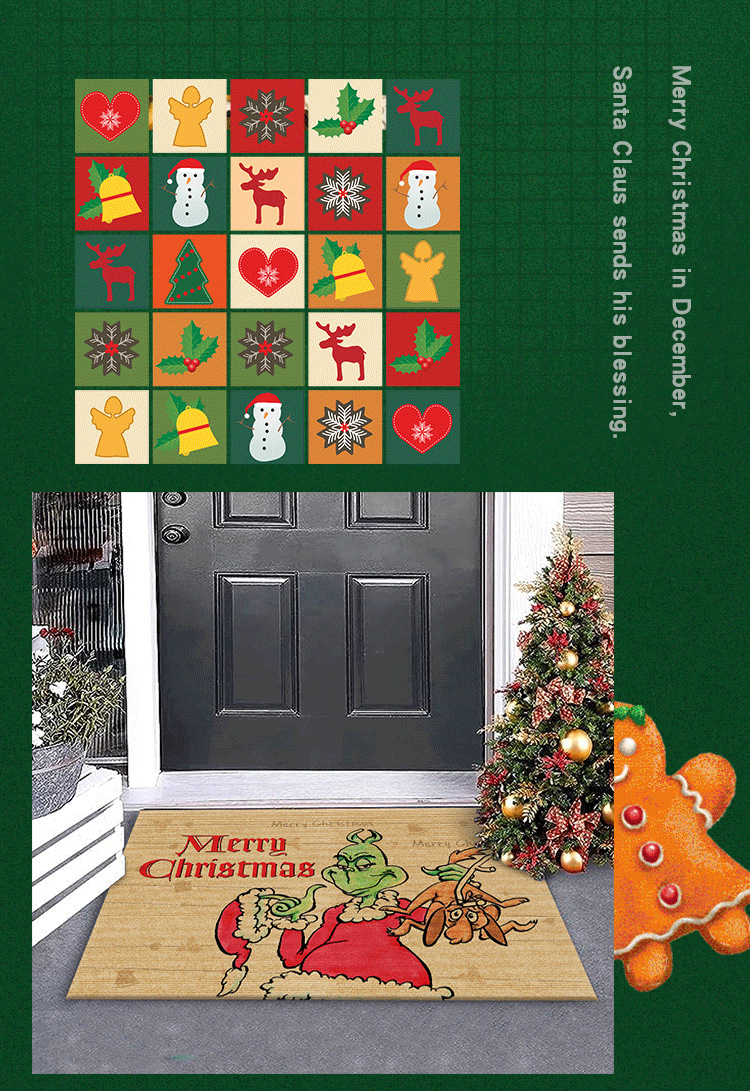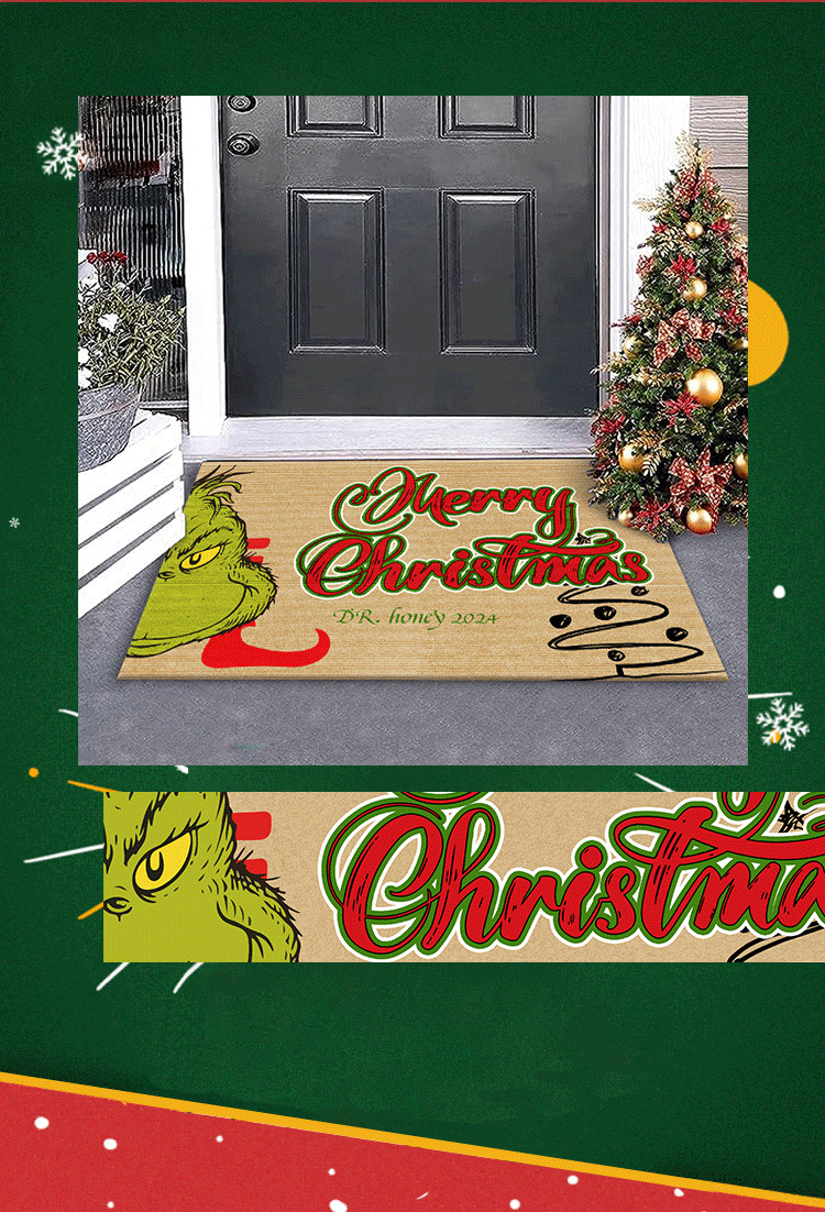 Nueva alfombra de puerta Grinch de Navidad Estera decorativa de Nochebuena Alfombra de piso de la generación del pelo del Amazonas Alfombra de piso