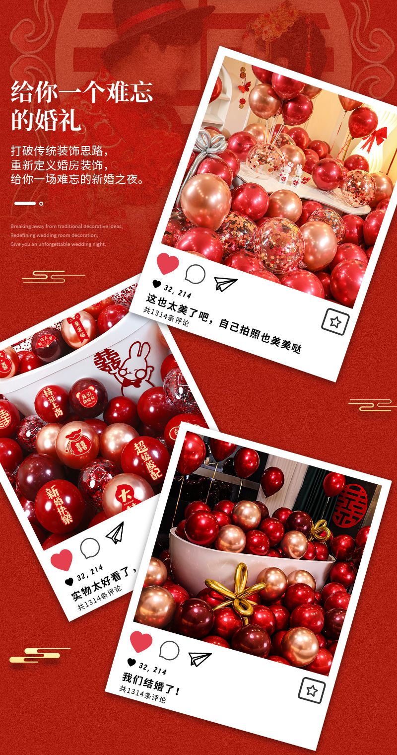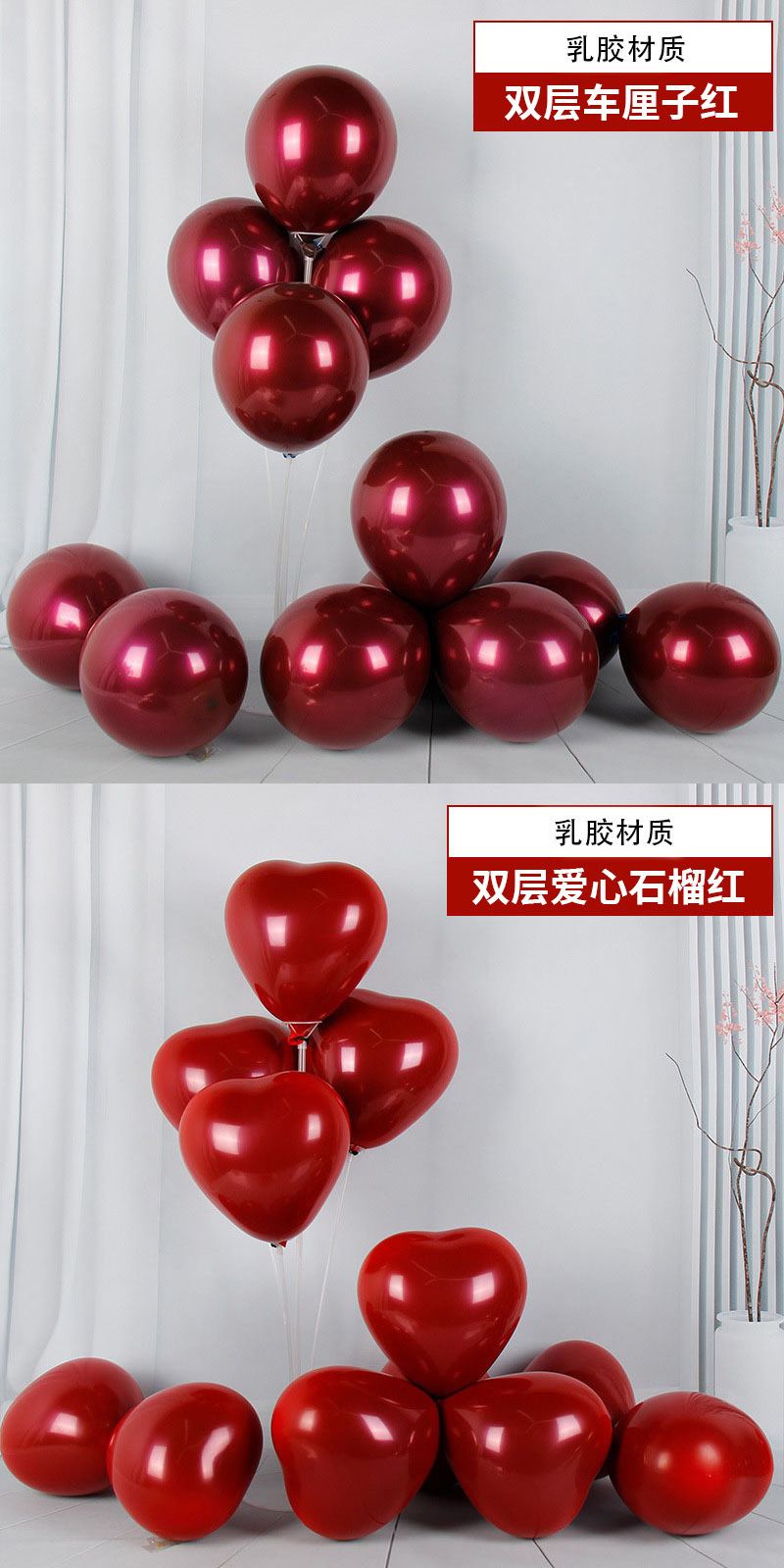 Globo de boda de 10 pulgadas doble granada globo rojo decoración de la boda decoración de la boda guía del globo props