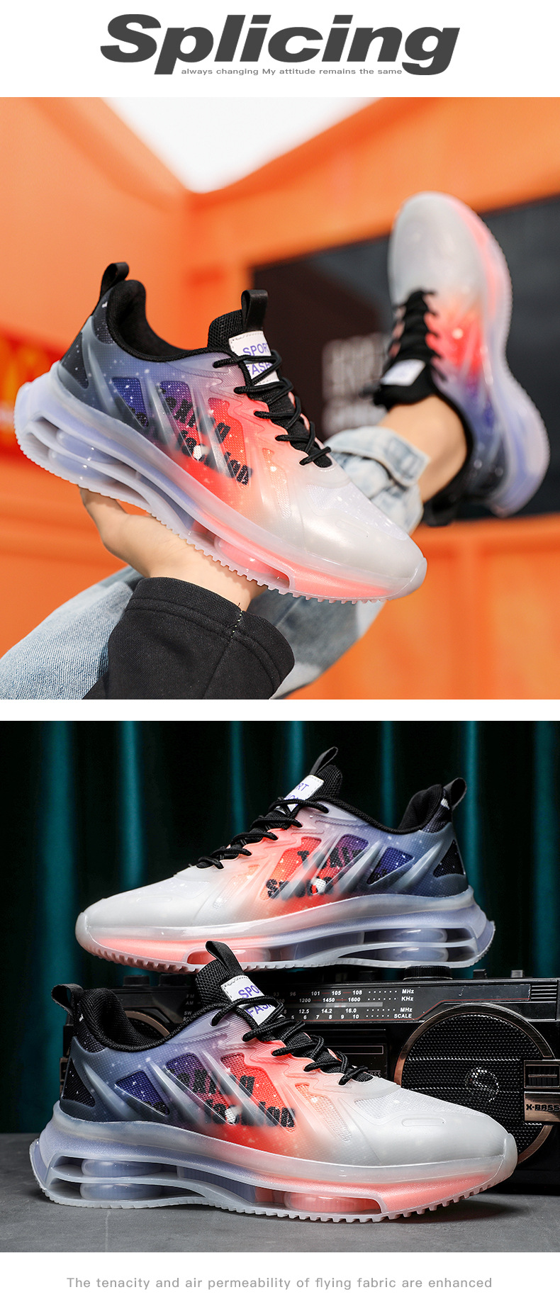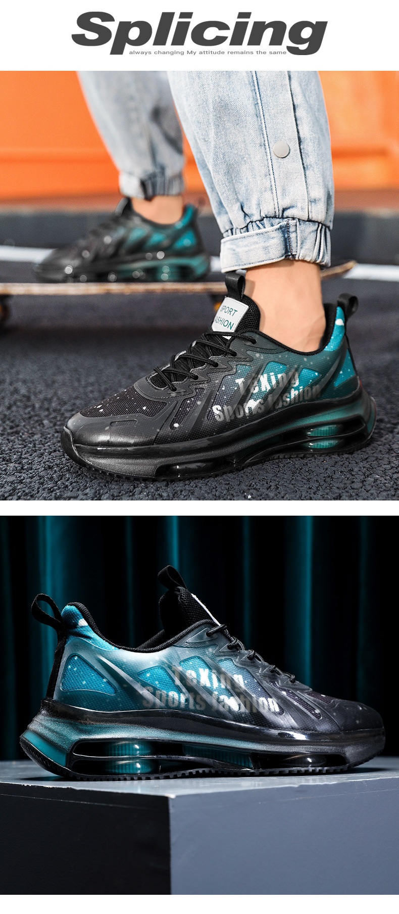 Cojín de aire doble zapatos de hombre a juego otoño nuevos deportes zapatos de correr casuales volando malla tejida superficie transpirable amortiguador papá zapatos de moda