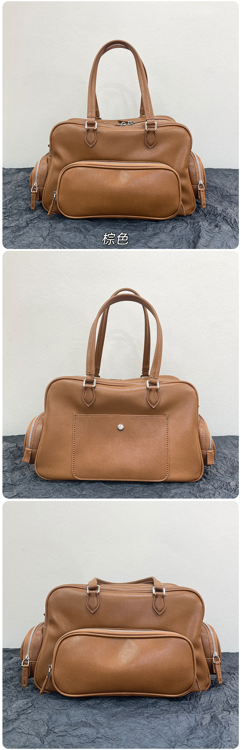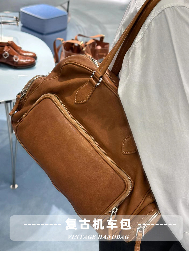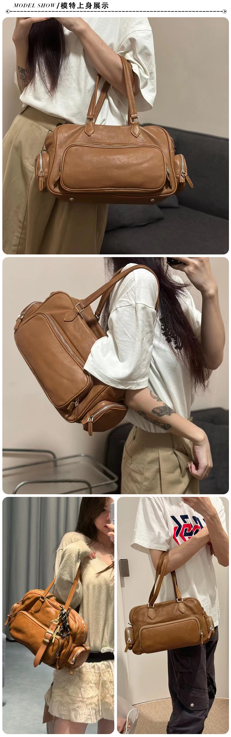 Bolso tote de bolos retro de piel de vaca curtida con plantas Bolso de hombro de cuero Bolso de axila Bolso de locomotora Bolso de almohada Boston