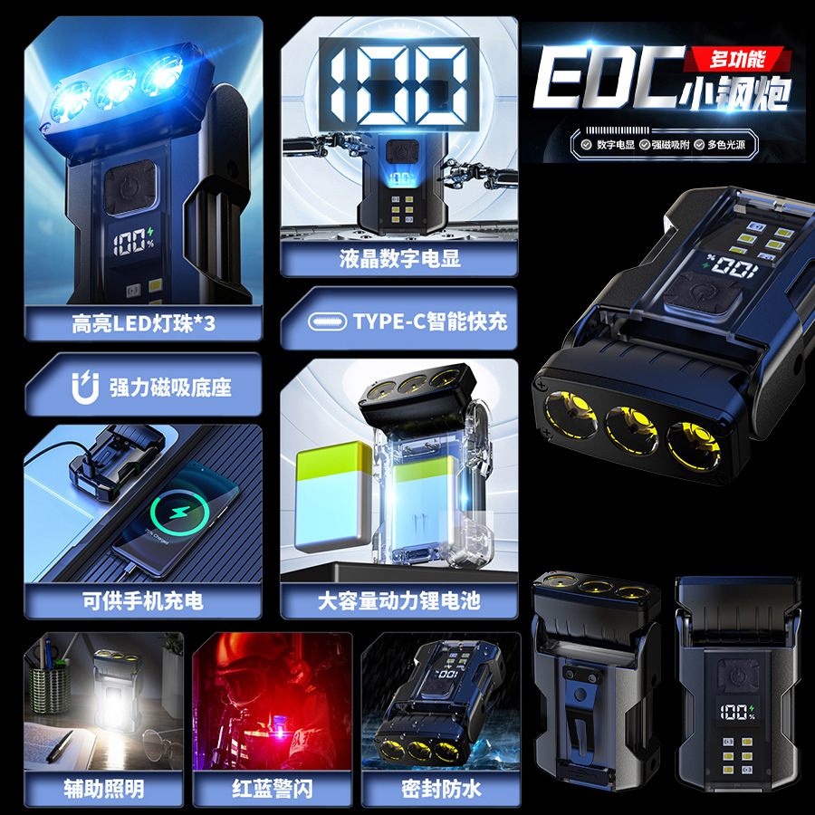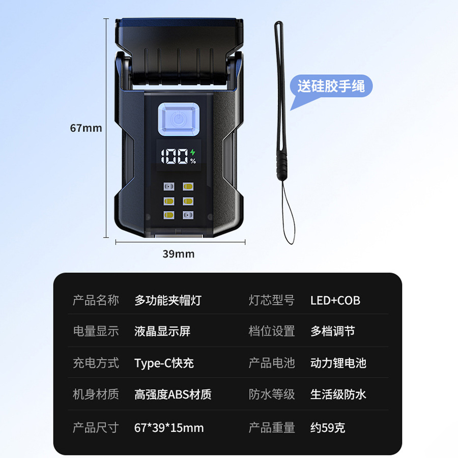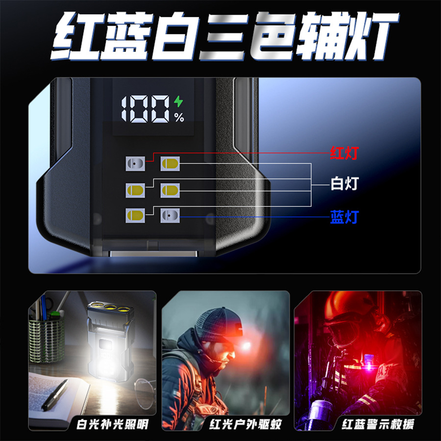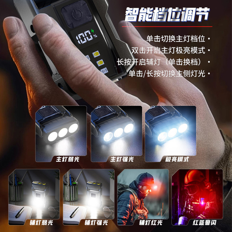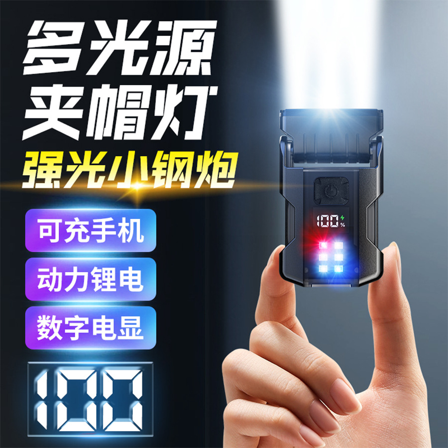 Cross-border nueva lámpara de clip de sombrero multifuncional luz brillante al aire libre cañón de acero multifuente de luz luz mini linterna