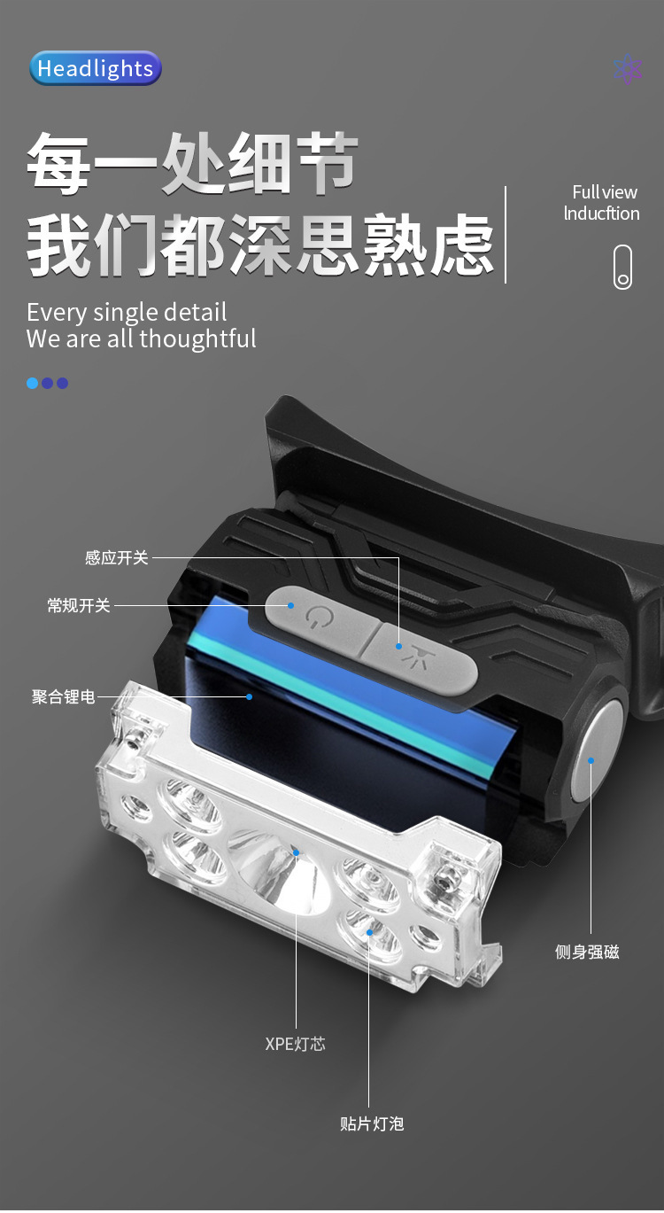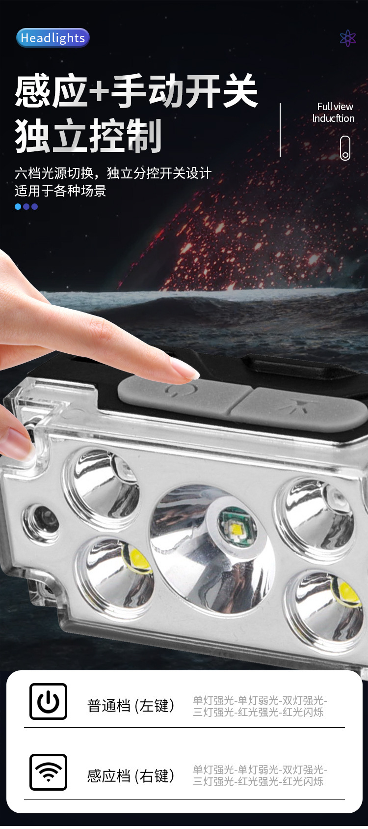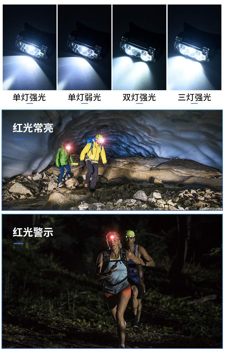 Luz transfronteriza multifuncional al aire libre luz de pesca luz de cabeza de luz de litio de larga duración luz de luz de cabeza