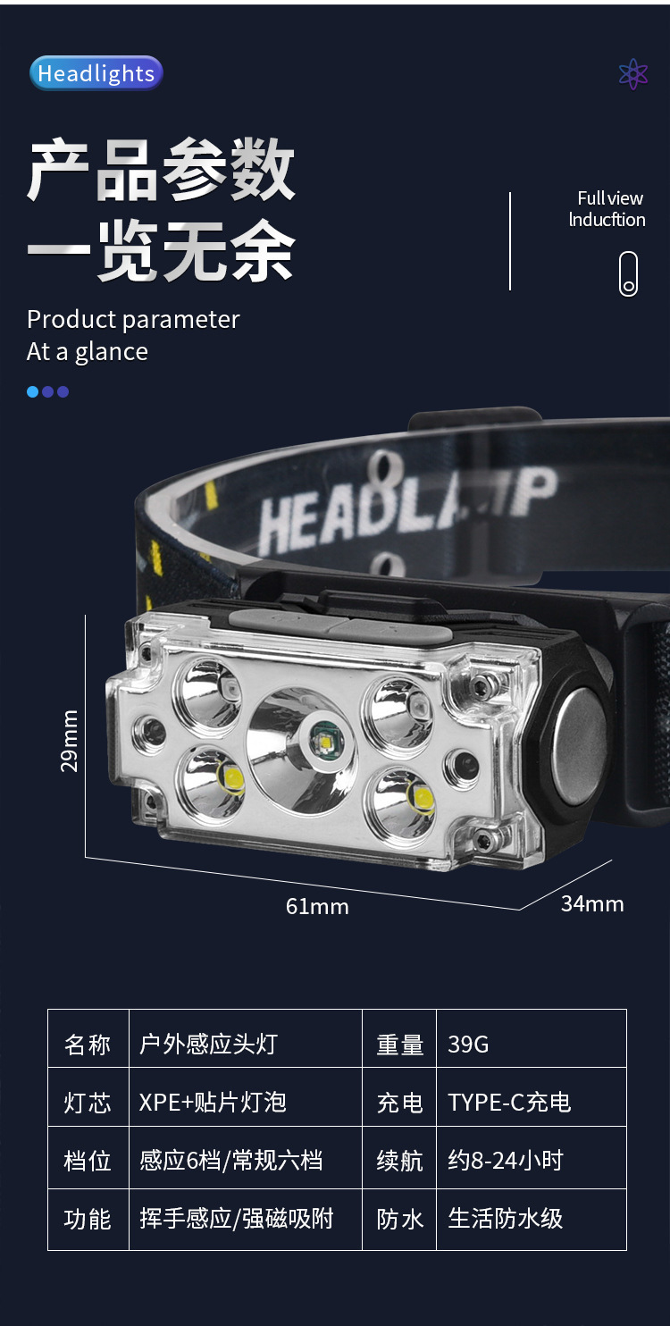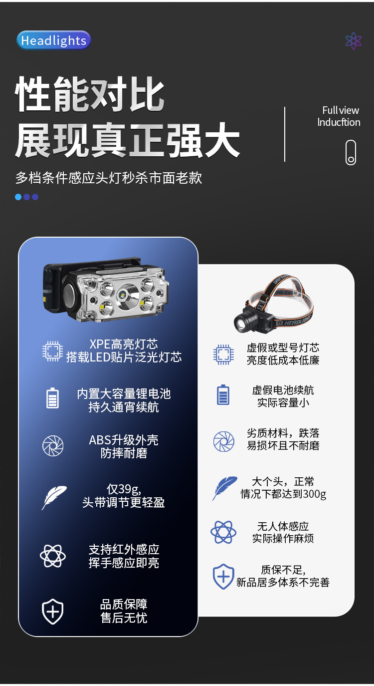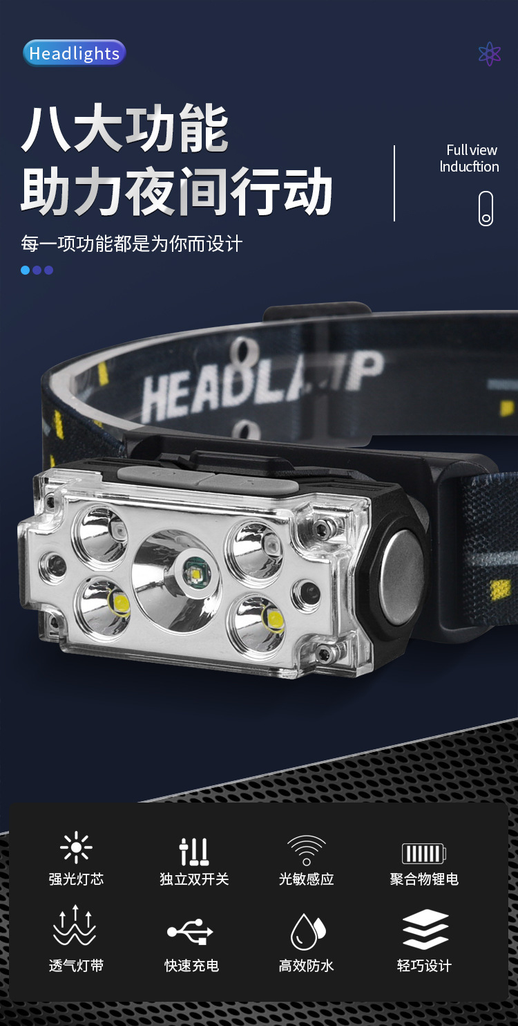 Luz transfronteriza multifuncional al aire libre luz de pesca luz de cabeza de luz de litio de larga duración luz de luz de cabeza
