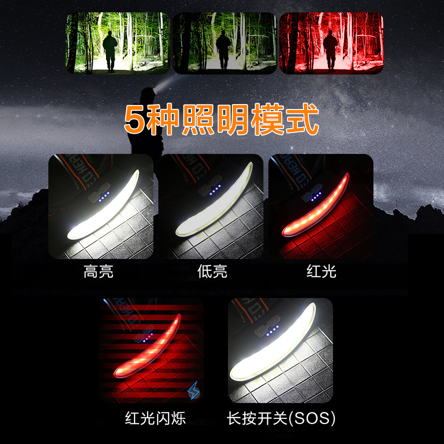 Transfronterizo doble fuente de luz luz alta luz remota linterna de cabeza al aire libre iluminación de pesca nocturna doméstica luz alta luz led faro