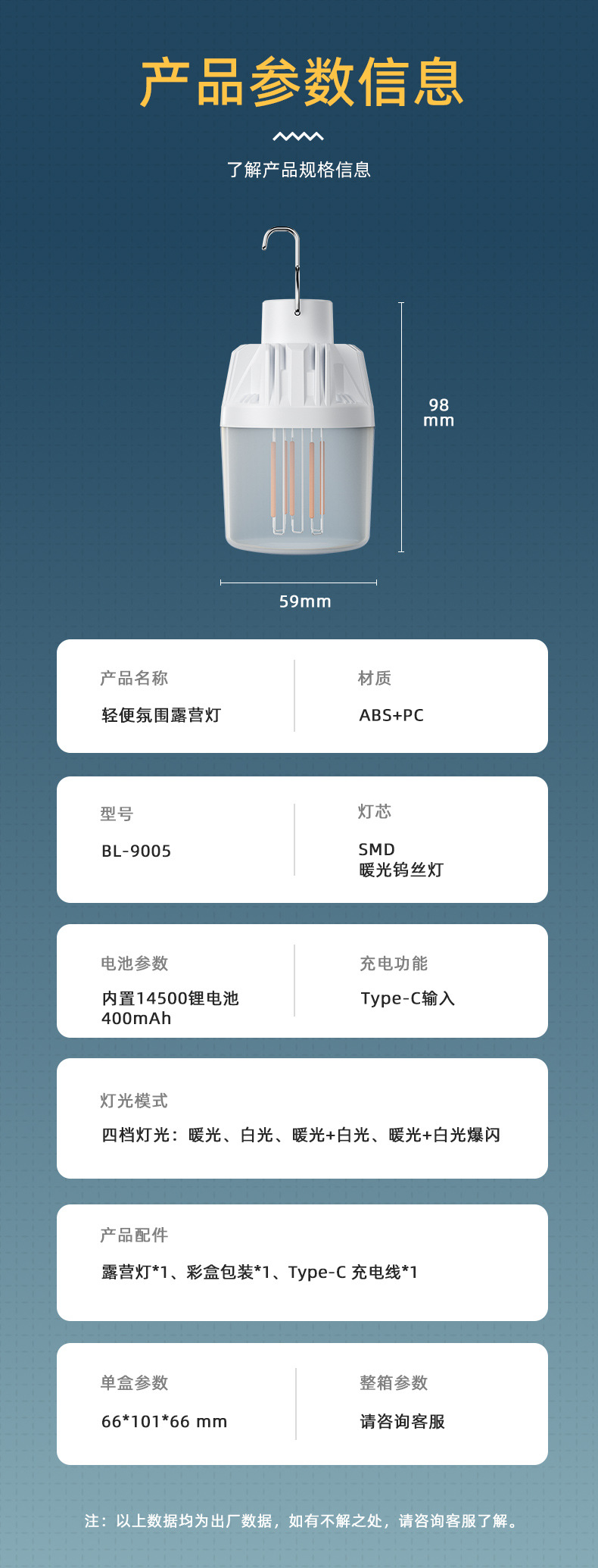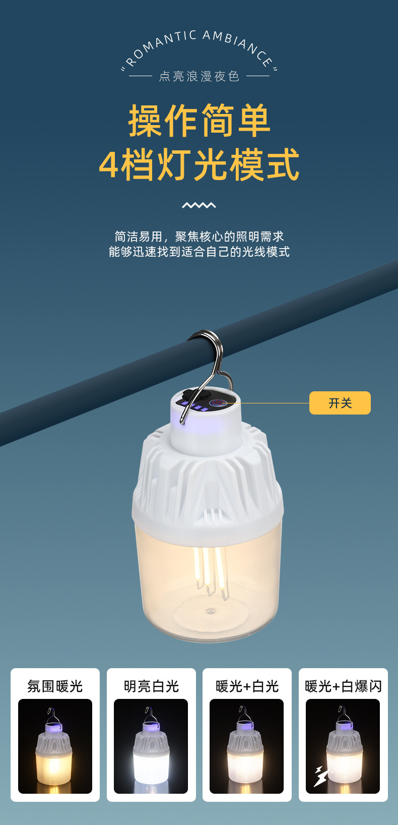 Nuevas luces de campamento al aire libre transfronterizas Iluminación LED portátil Iluminación portátil Luz nocturna de campamento simple