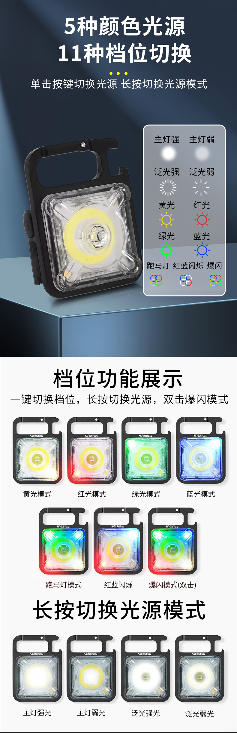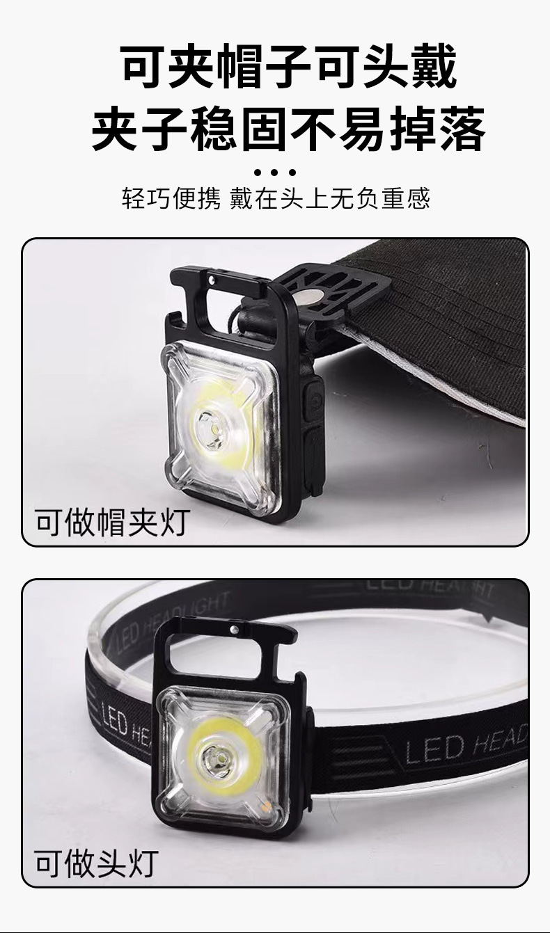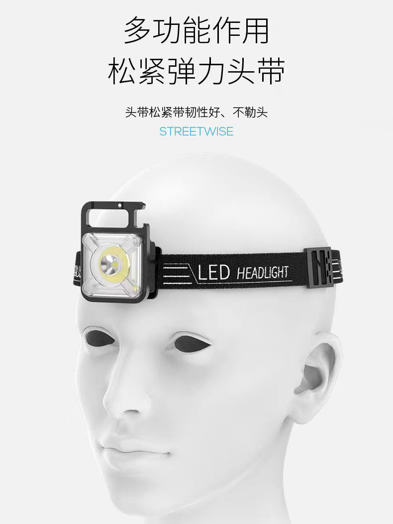 Transfronterizo multifuncional llavero lámpara mini luz de cabeza calva fuerte iluminación de emergencia al aire libre lámpara de trabajo linterna montada en la cabeza