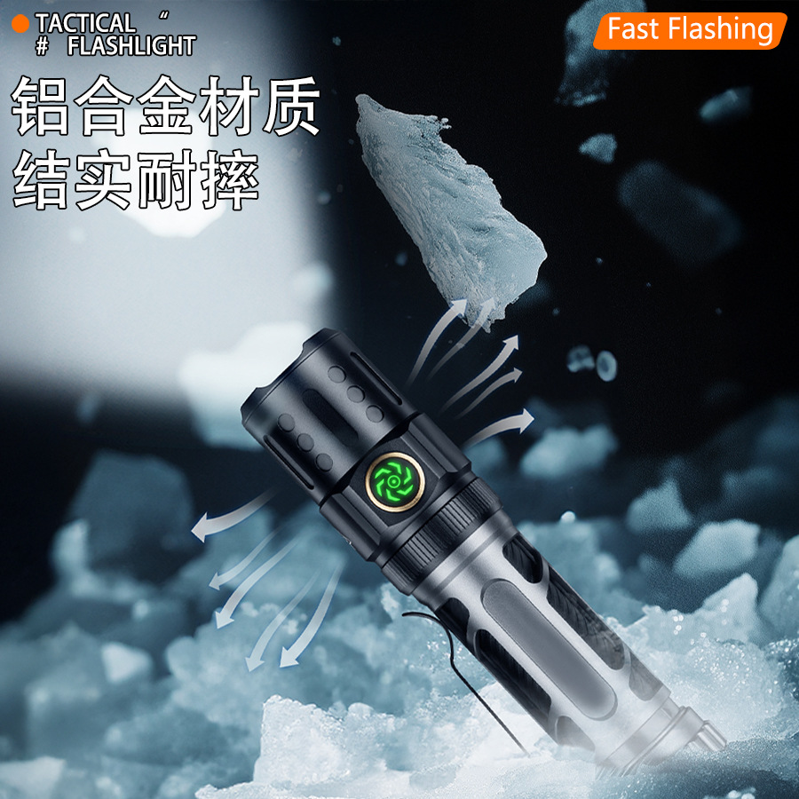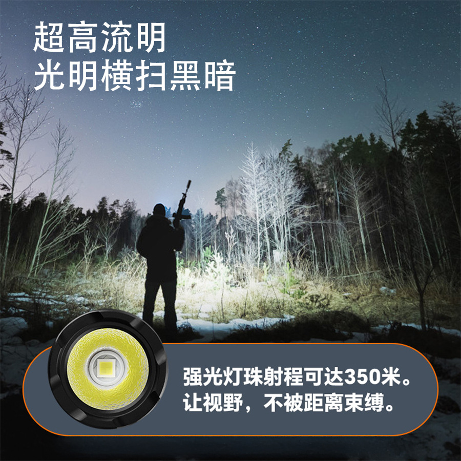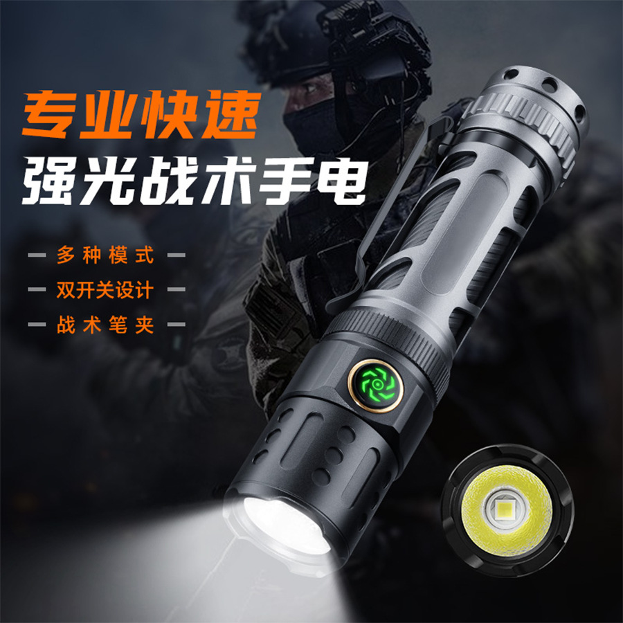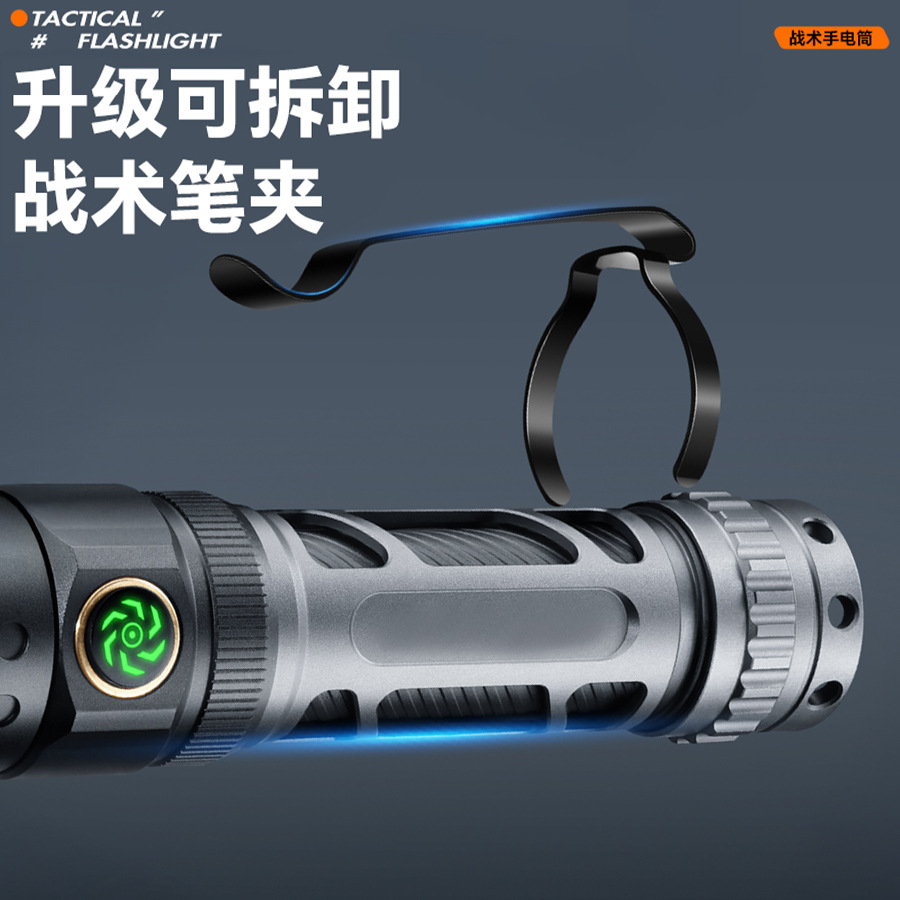 Transfronterizos nueva linterna láser blanca carga luz fuerte larga duración portátil pantalla digital antorcha de aleación de aluminio