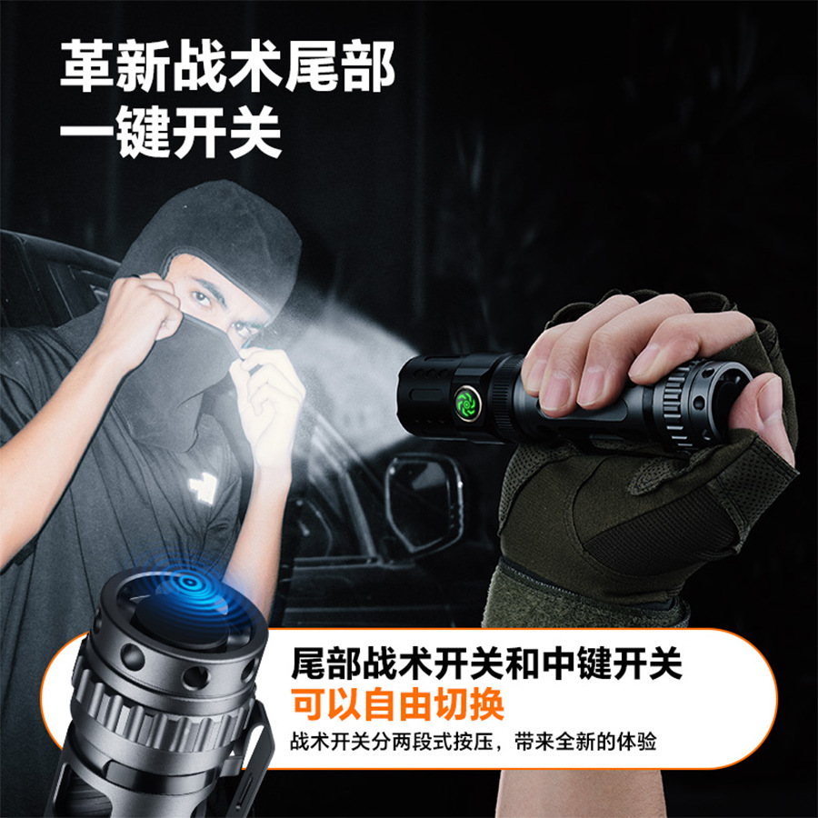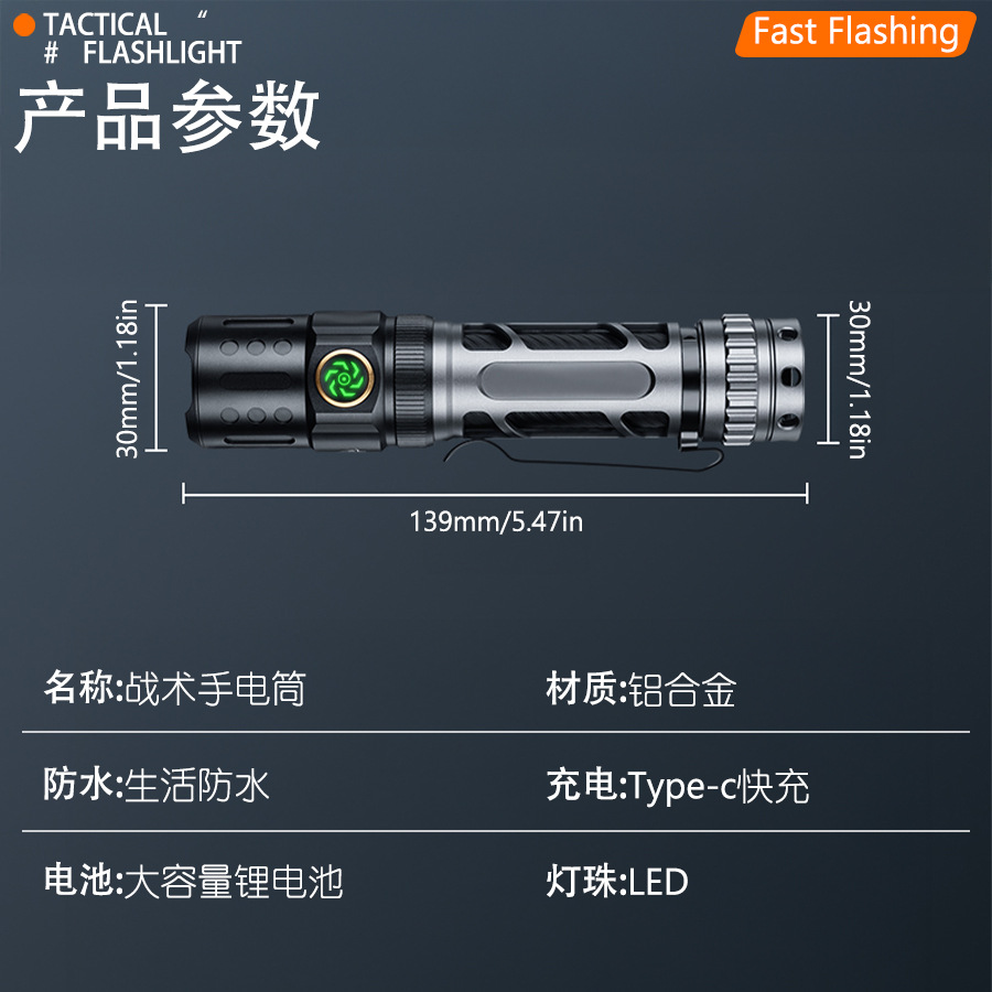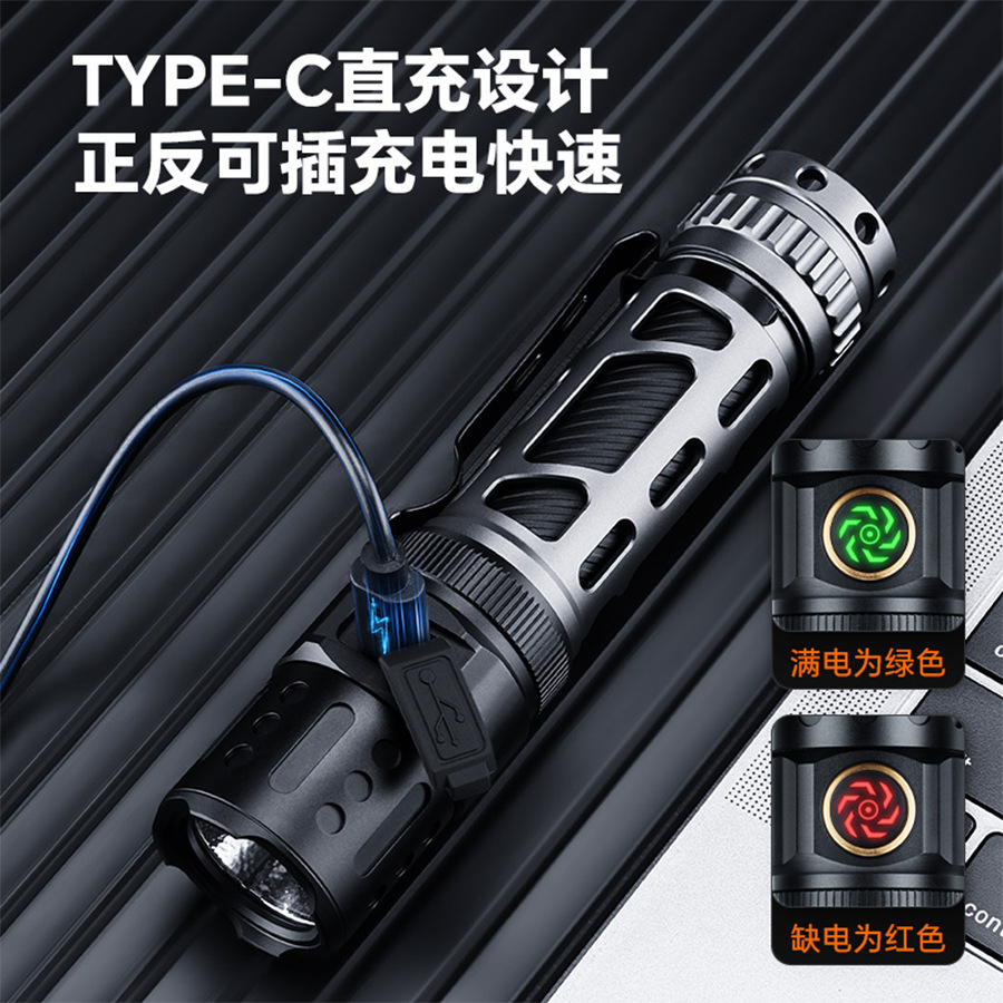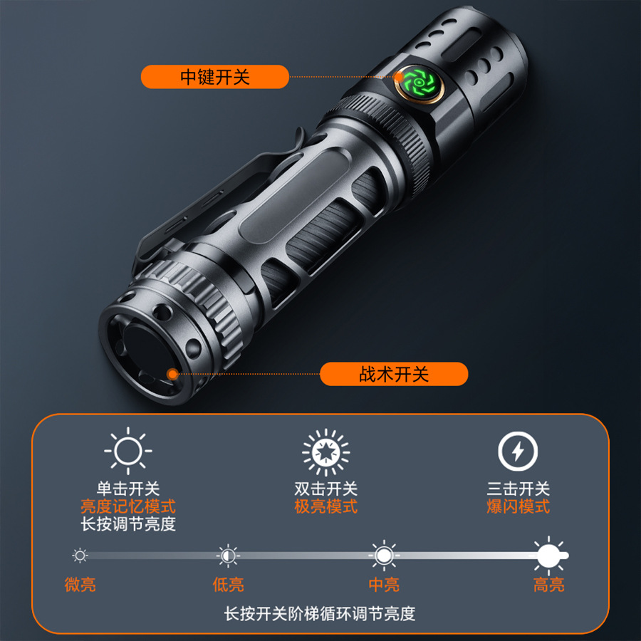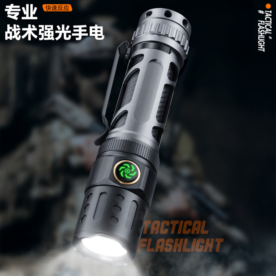Transfronterizos nueva linterna láser blanca carga luz fuerte larga duración portátil pantalla digital antorcha de aleación de aluminio