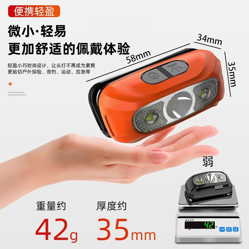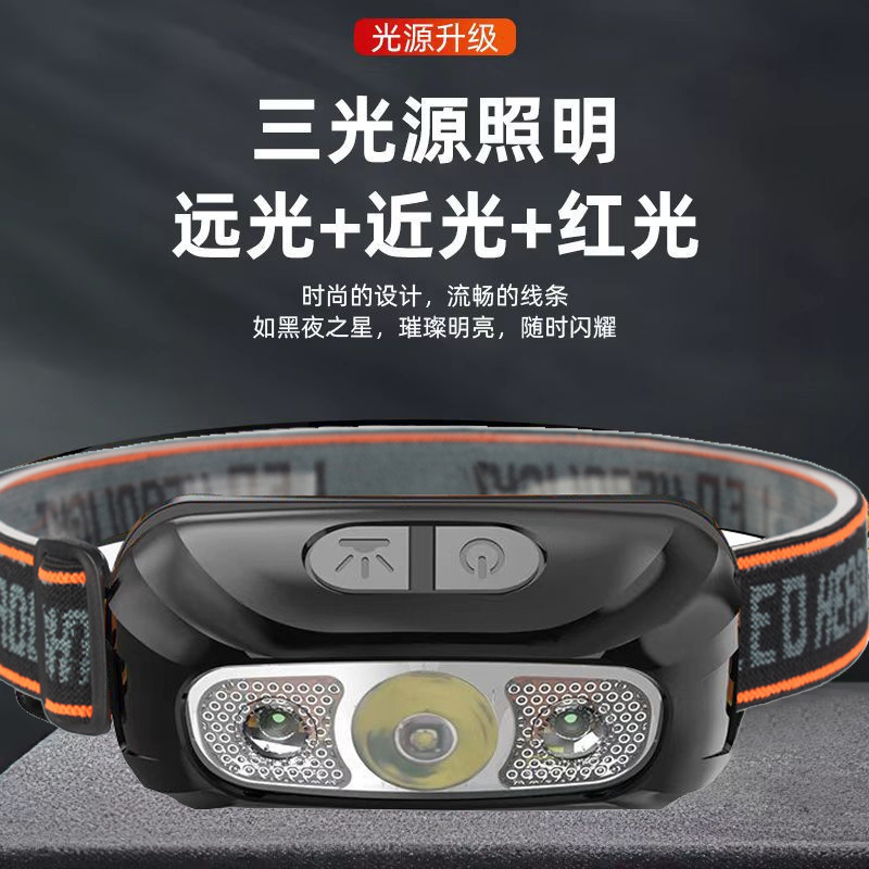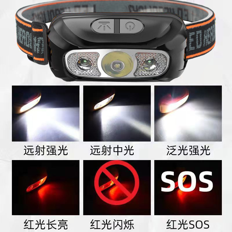 Transfronterizo LED Faro de inducción USB carga fuerte onda de luz de inducción lámpara de pesca impermeable incorporado linterna de la batería de litio