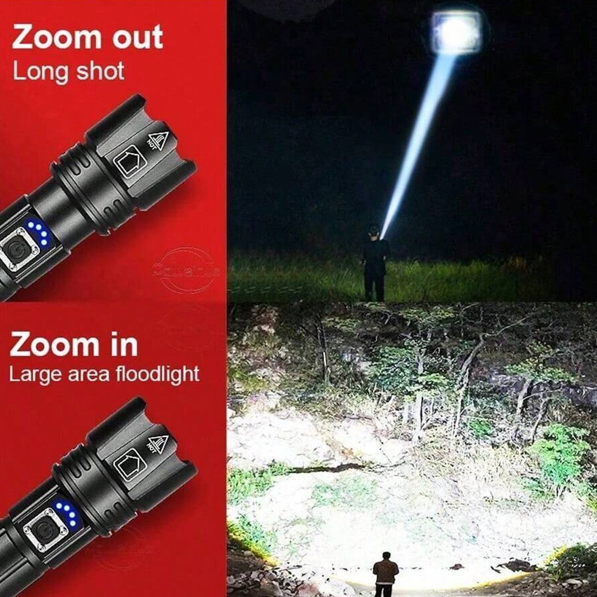 Nuevo zoom telescópico transfronterizo XHP99 / P70 linterna de luz LED linterna de carga USB al aire libre