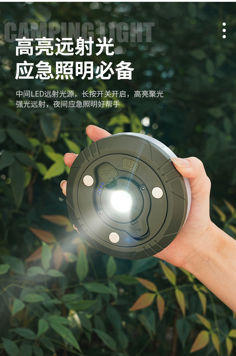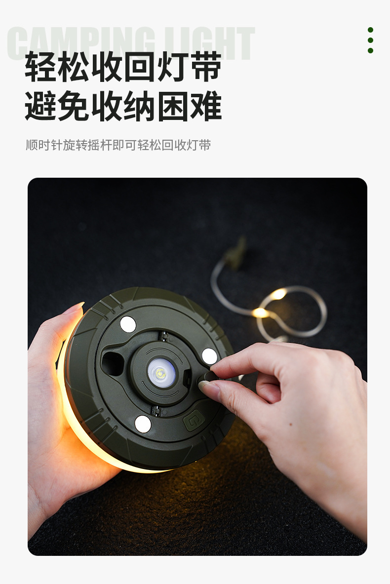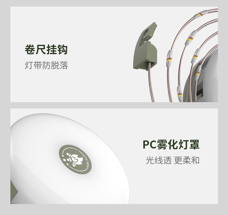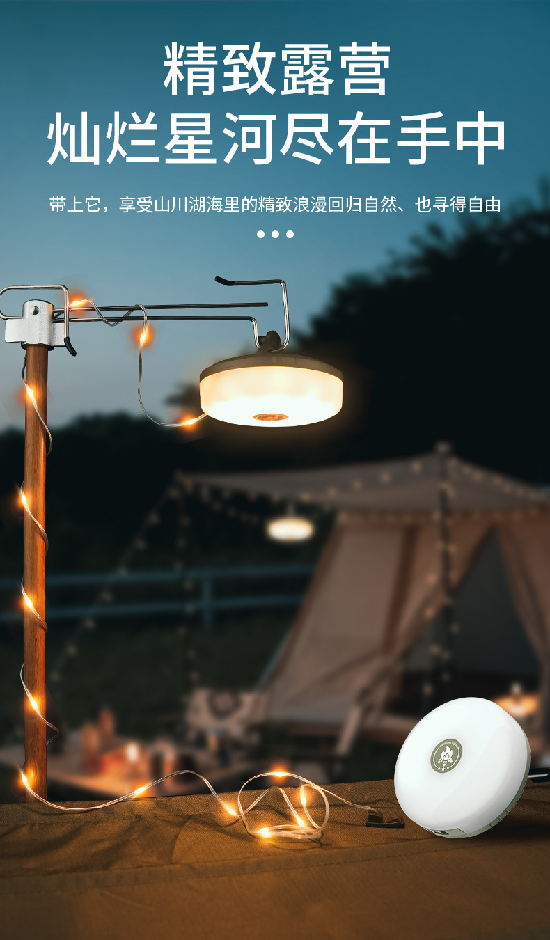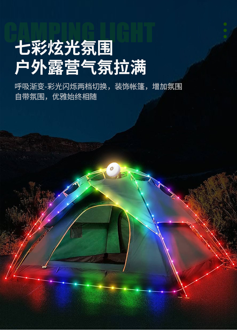 Luz de camping LED transfronteriza, luz de camping impermeable al aire libre, carga USB, luz de cadena colorida, cinta métrica, atmósfera de almacenamiento, luz de carpa