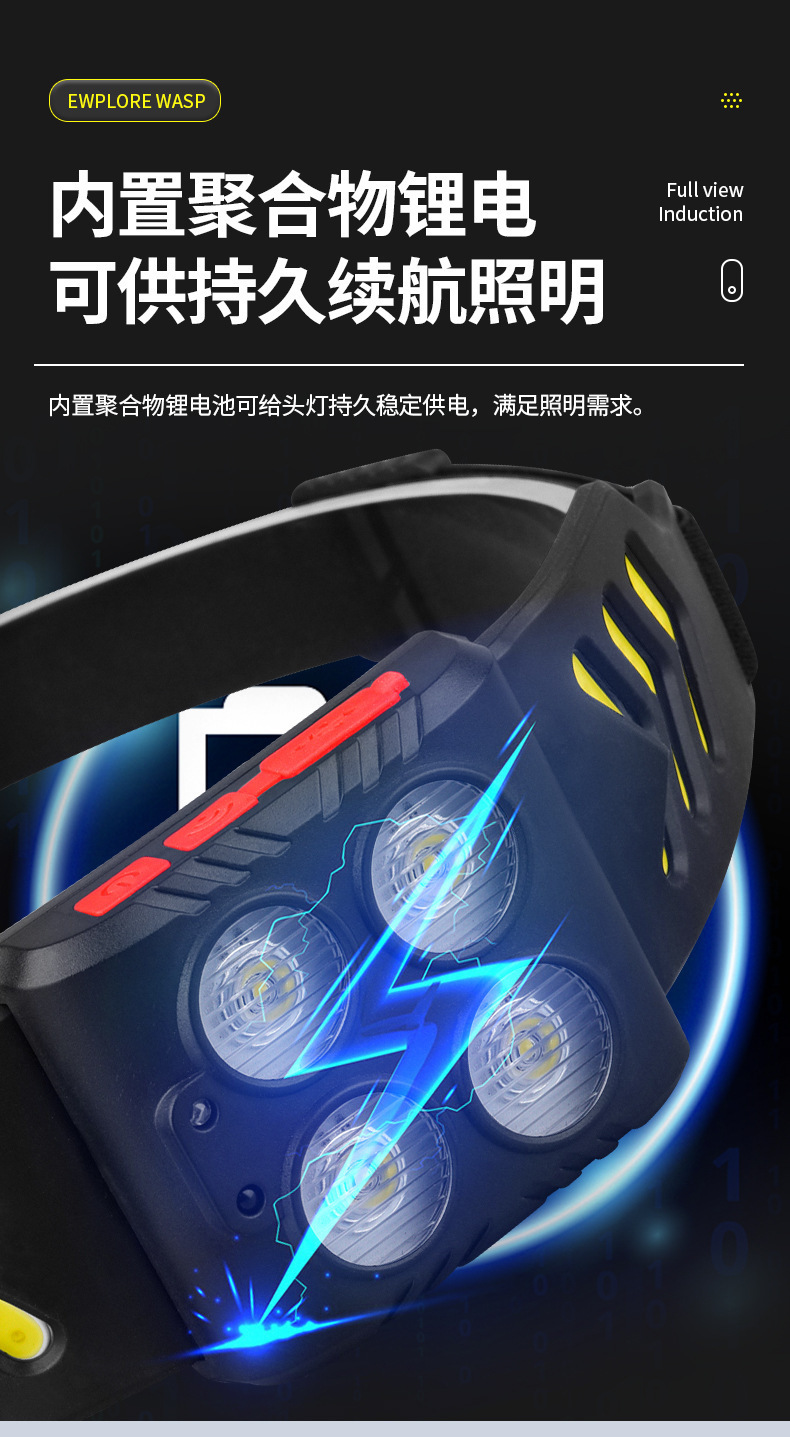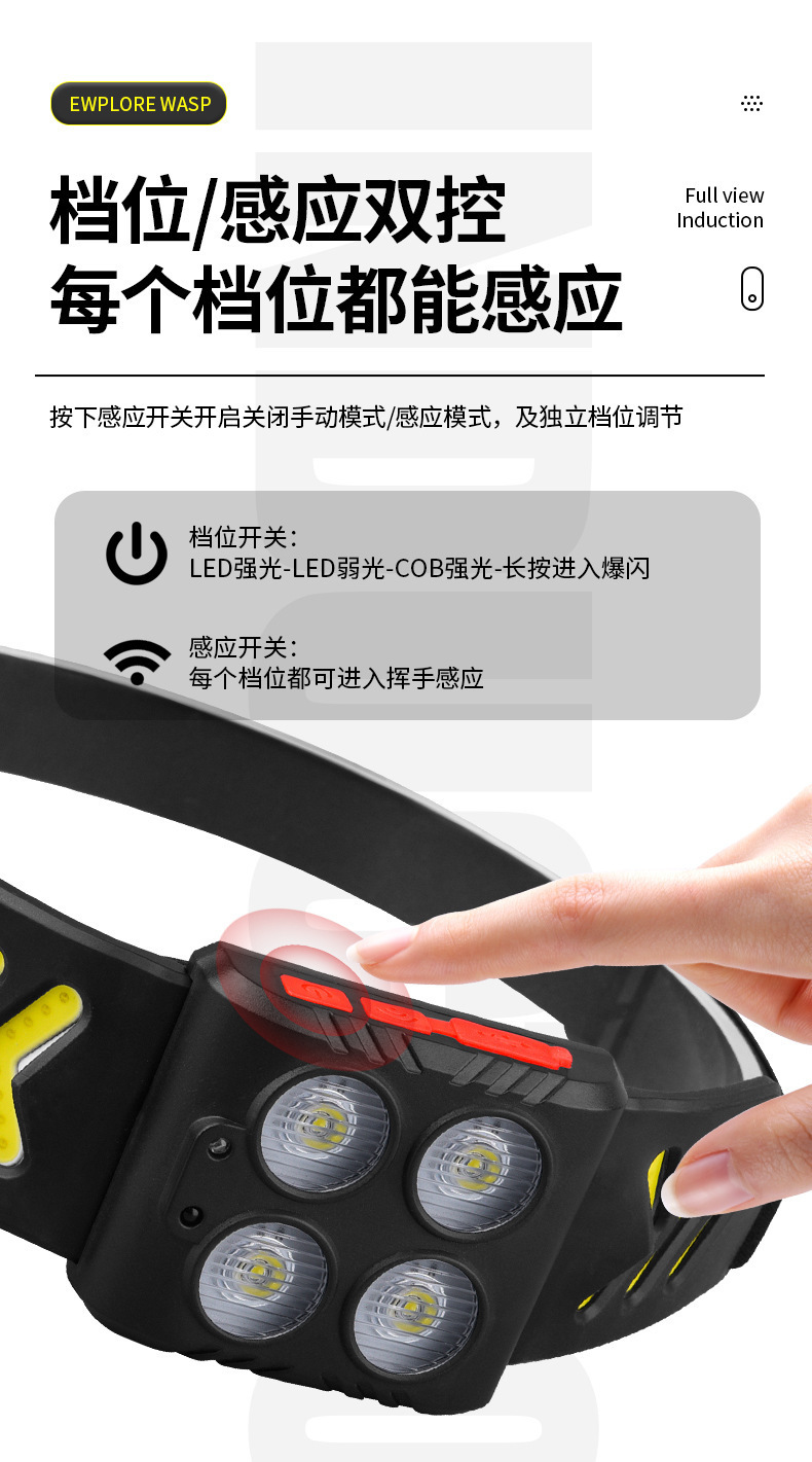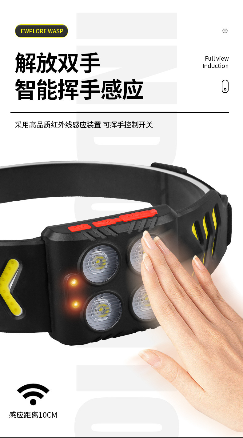 Lámpara de pesca nocturna especial pescar luz fuerte carga de luz de inducción montada en la cabeza super larga duración LED iluminación para correr por la noche