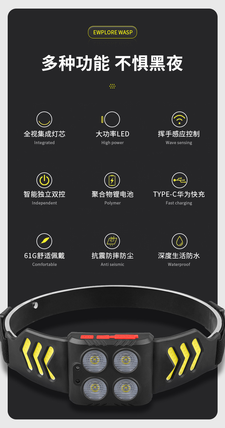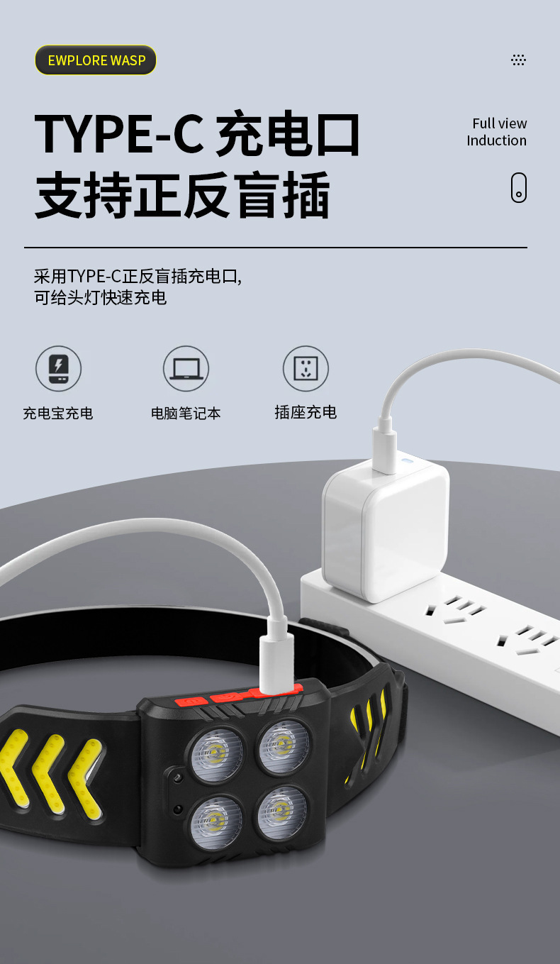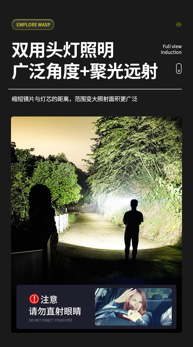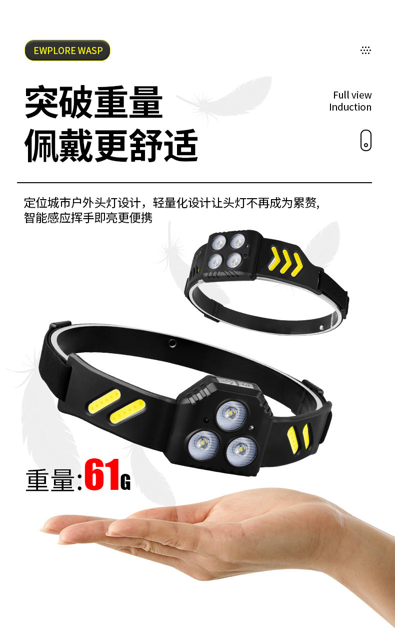 Lámpara de pesca nocturna especial pescar luz fuerte carga de luz de inducción montada en la cabeza super larga duración LED iluminación para correr por la noche