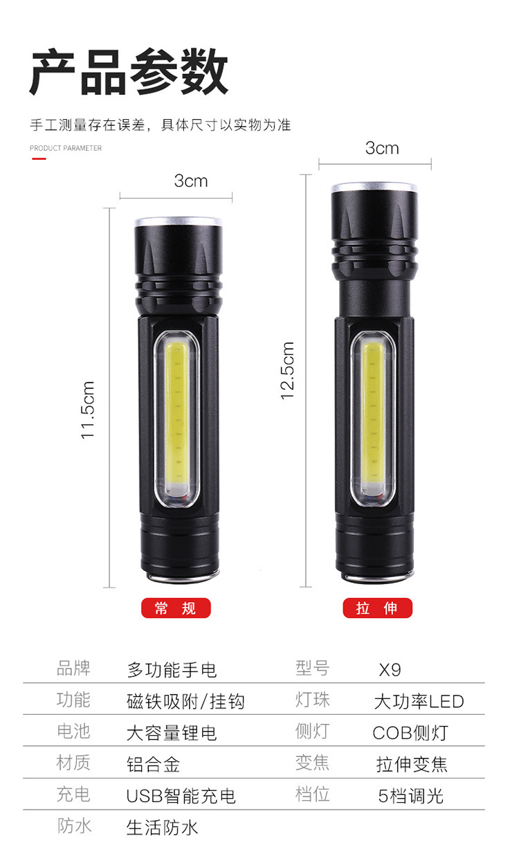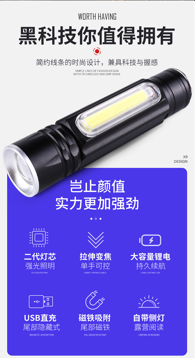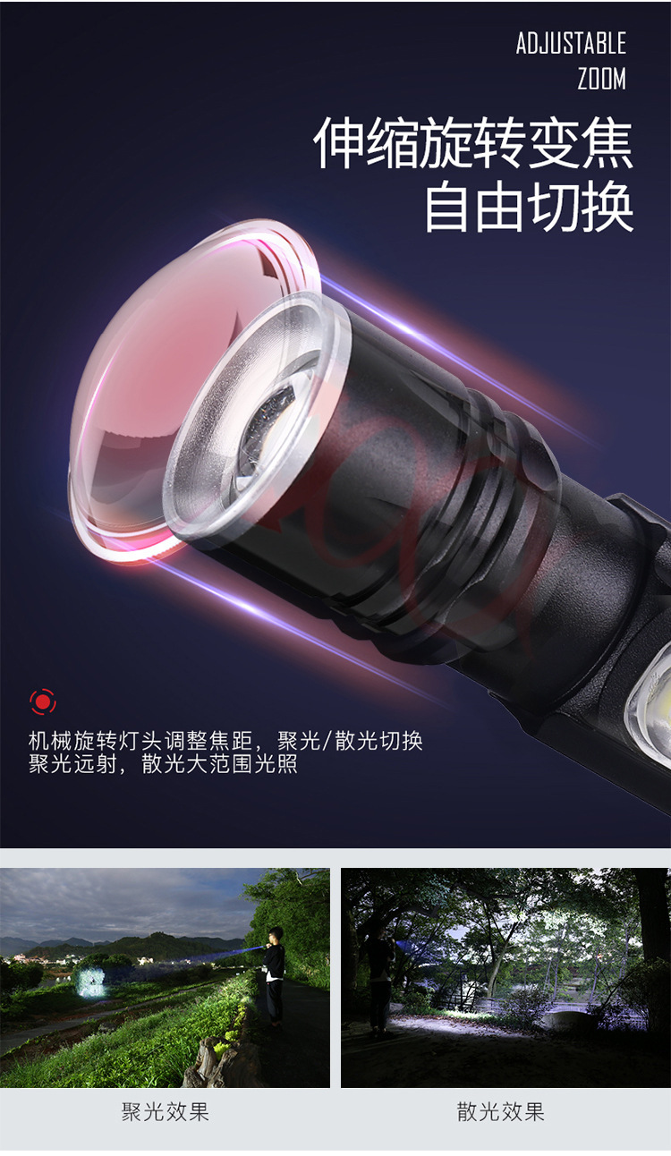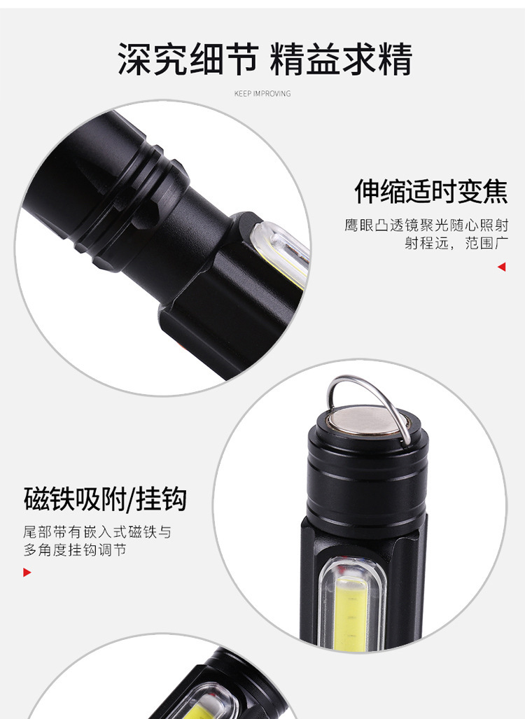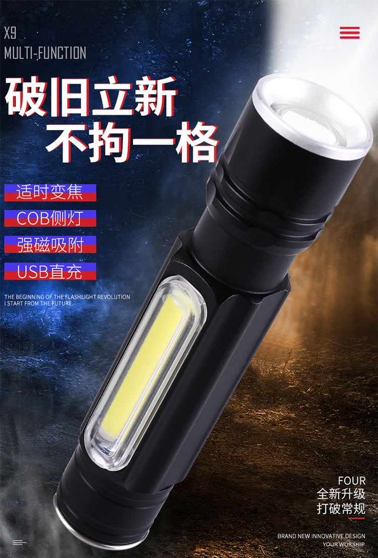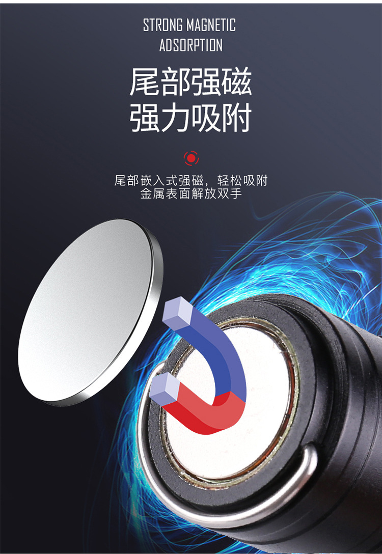Lintera de luz intensa transfronteriza led zoom brillante remoto magnet de reparación de automóviles de mano al aire libre linterna de iluminación intensa