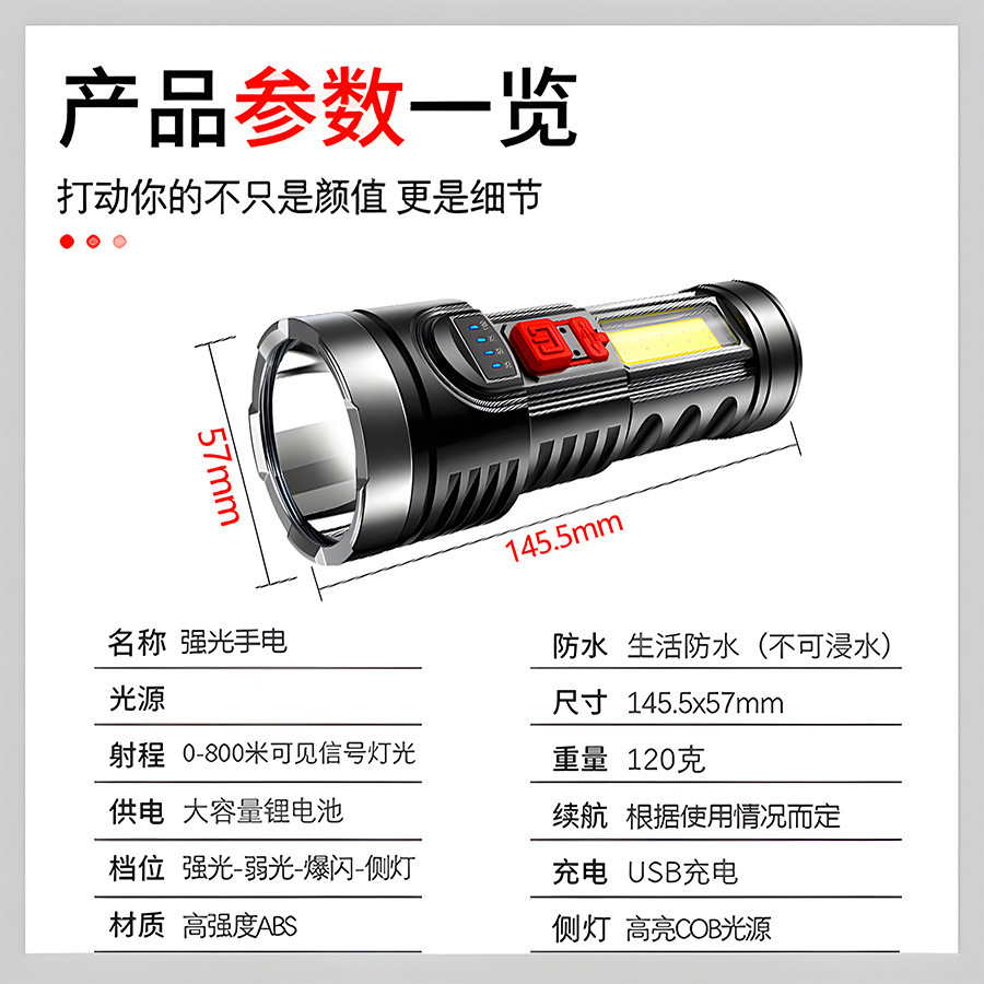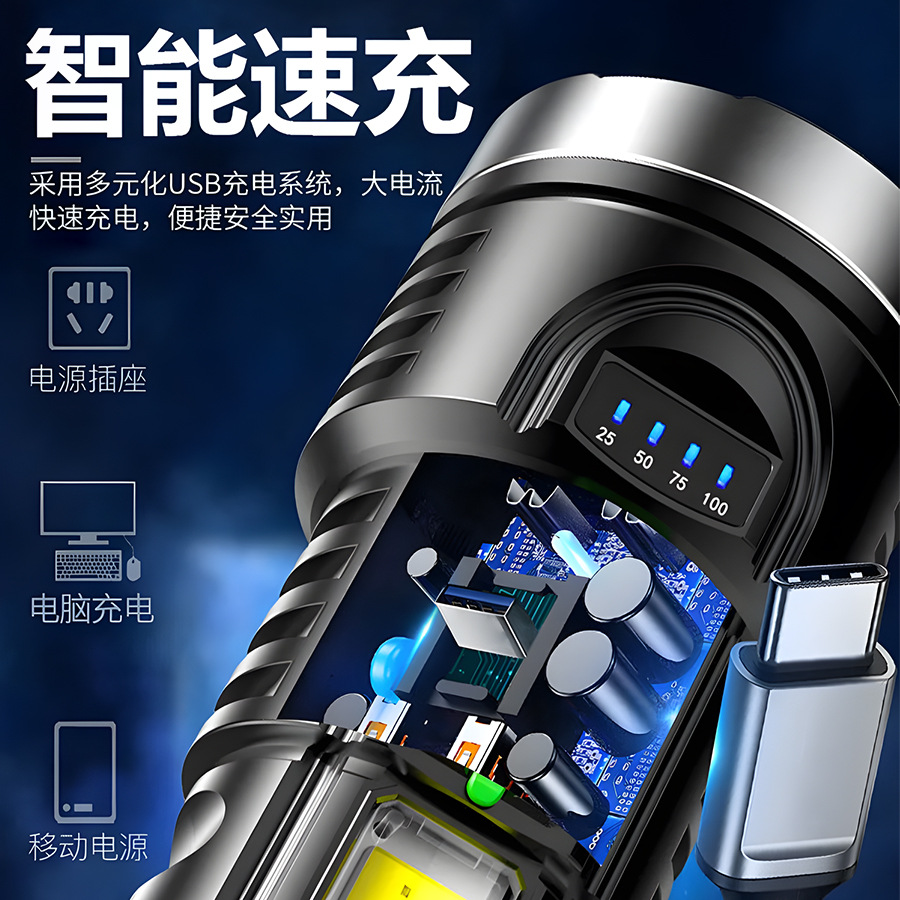 Transfronterizos COB linterna lateral luz de detección remota luz de montaje nocturno linterna al aire libre LED de gran capacidad USB carga luz