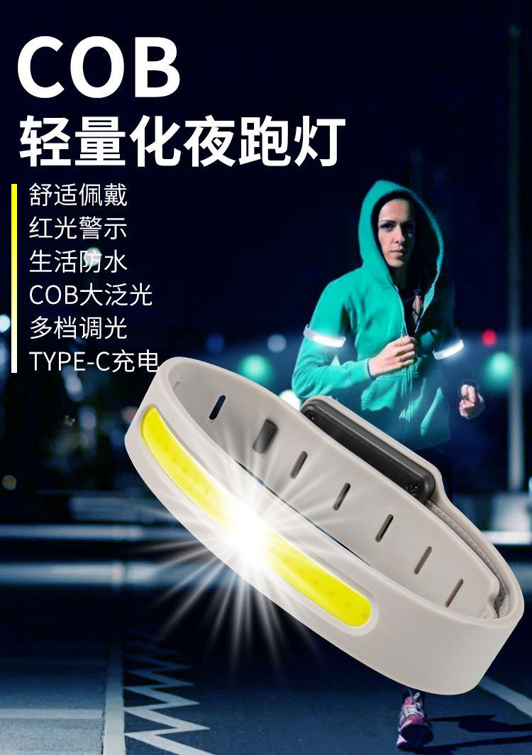 Lámpara de muñeca acolchada transfronteriza, luz roja y blanca, equipo de protección deportiva especial para correr de noche, luz de muñeca recargable de larga duración