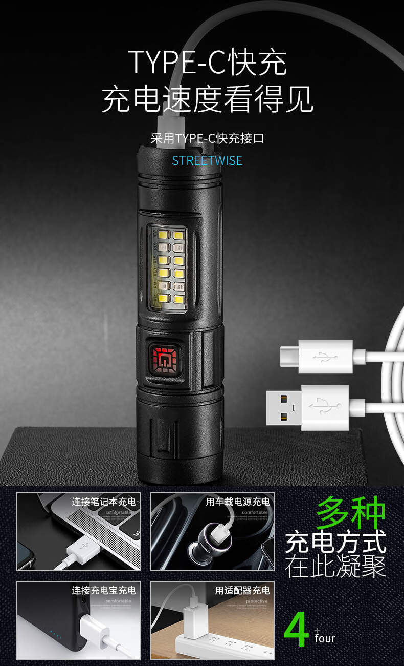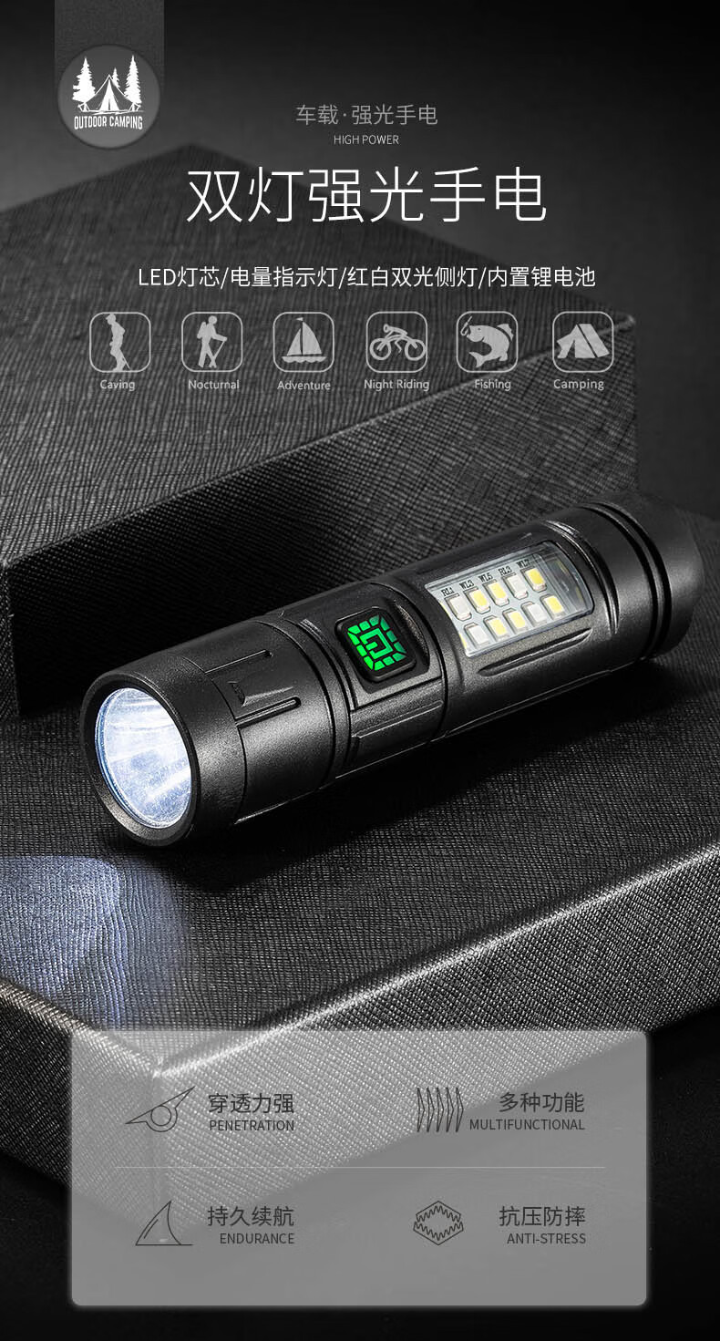 Luz transfronteriza LED linterna lateral luz intensa linterna lateral a prueba de agua mantenimiento de trabajo mini linterna a prueba de caídas