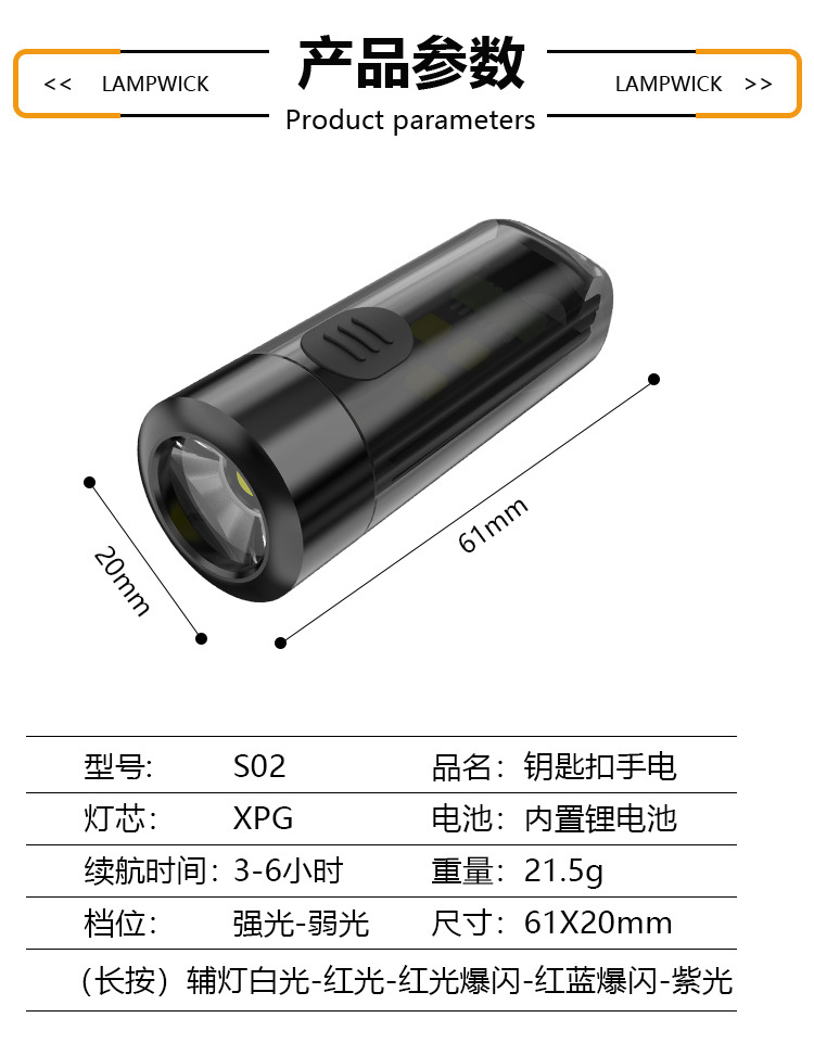 Luz fuerte al aire libre transfronteriza mini linterna llavero Luz de camping luz de emergencia luz de trabajo portátil