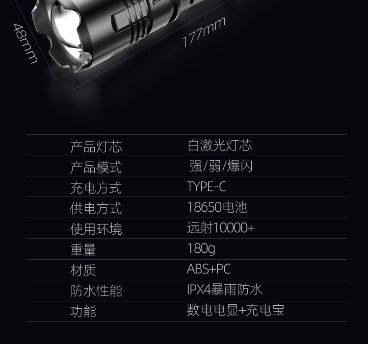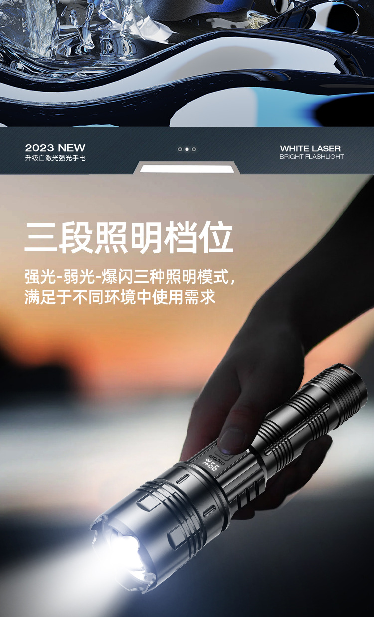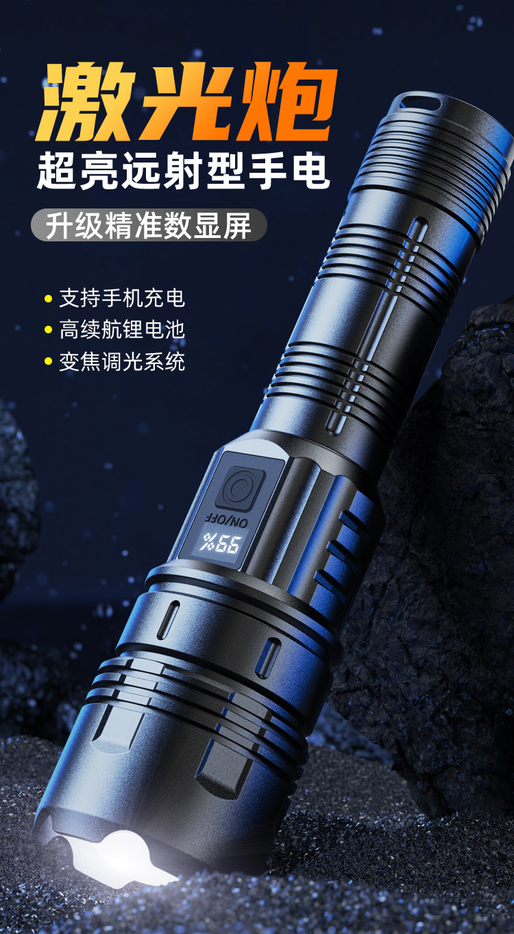 Lintera láser transfronteriza con linterna de luz intensa con pantalla digital de larga duración recargable
